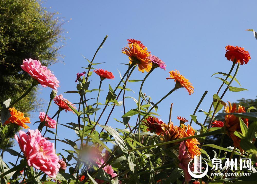 泉州网11月8日讯(融媒体记者 庄丽祥 通讯员 方丽群 文/图)本周末秋高气爽,阳光和煦。目前,丰泽区备受期待的都市花海——百日菊已进入盛花期。行至丰海路沿线一角,抬眼便能撞见一片色彩,百日菊就那样自在地绽放于绿地里,以最自然的姿态,勾勒出秋光里藏不住的诗意。
