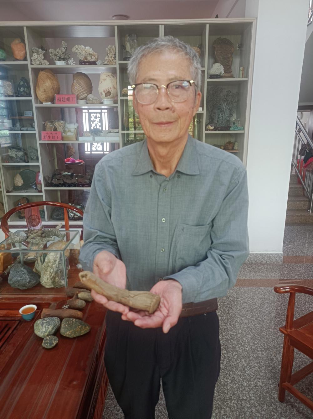 找什么宝贝呢?他说,20世纪八九十年代,有村民在惠女湾的沙滩中发现“树木遗迹”,且经常有人捡到“石头”。邻村的战友王水宗和他有着同样的兴趣,两人遂经常一起搜寻研究。