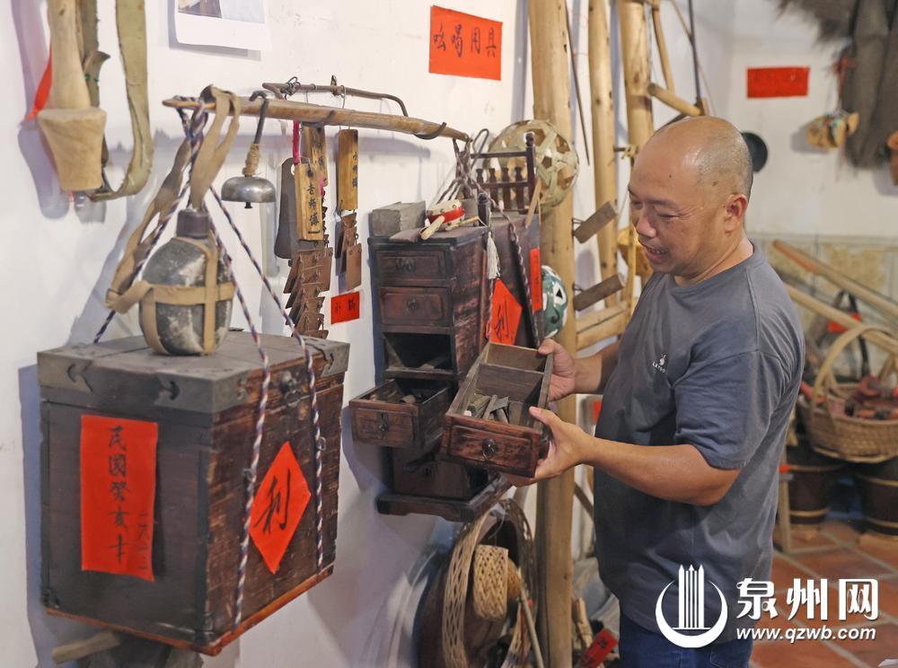 记者探访得知,展示馆由52岁的尤铭沧用自家老宅改造而成。2019年,兄弟几人回乡修路时重返老宅,触景生情,尤铭沧决定将家中旧物整理展出,并借经商之机四处收集相关老物件,最终汇集四五百件藏品。尤铭沧按卧室用品、厨房用品、生产用具三类,将老物件陈列于老宅对应房间,复原早年生活场景,免费向公众开放。