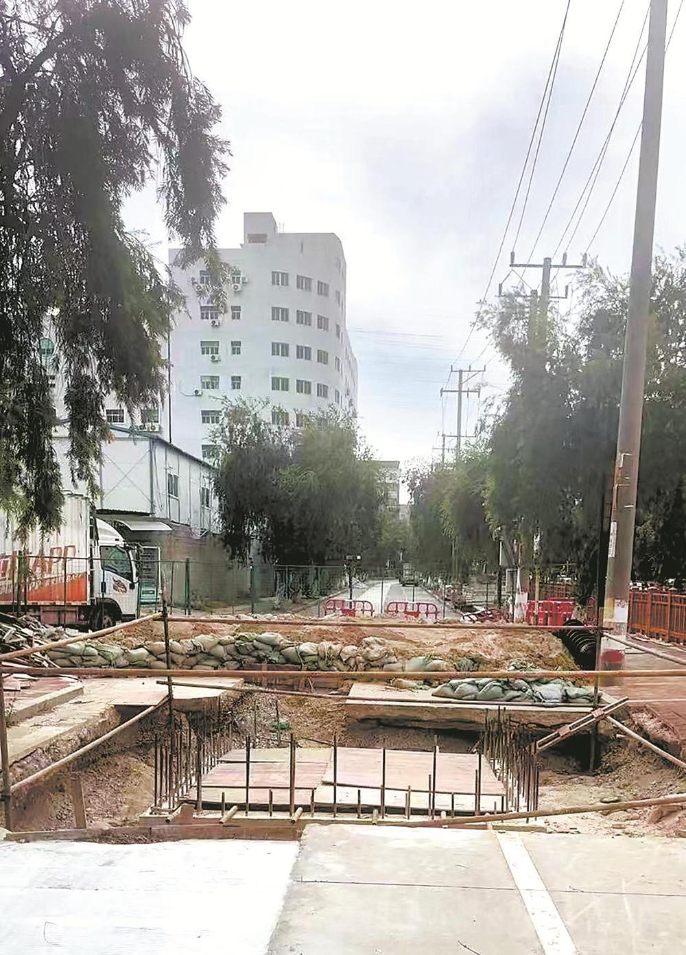 李先生反映的路段位于曾坑国税花苑西侧,长约50米的路面两端设置了绿色金属网状围挡。围挡内,路面被大面积开挖,露出钢筋绑扎的施工结构,坑边堆垒着沙土、沙袋及各类施工材料。李先生说,该路段是小区唯一出入口,施工后往南环路方向的通道被阻断,居民需绕行嘉禄路,而嘉禄路路口紧邻石狮市第三实验小学。每到上班上学高峰,绕行路段车流、人流密集,小区居民进出常陷入拥堵,通行十分不便。他们迫切想知道项目具体完工时间,以及何时能恢复正常通行。