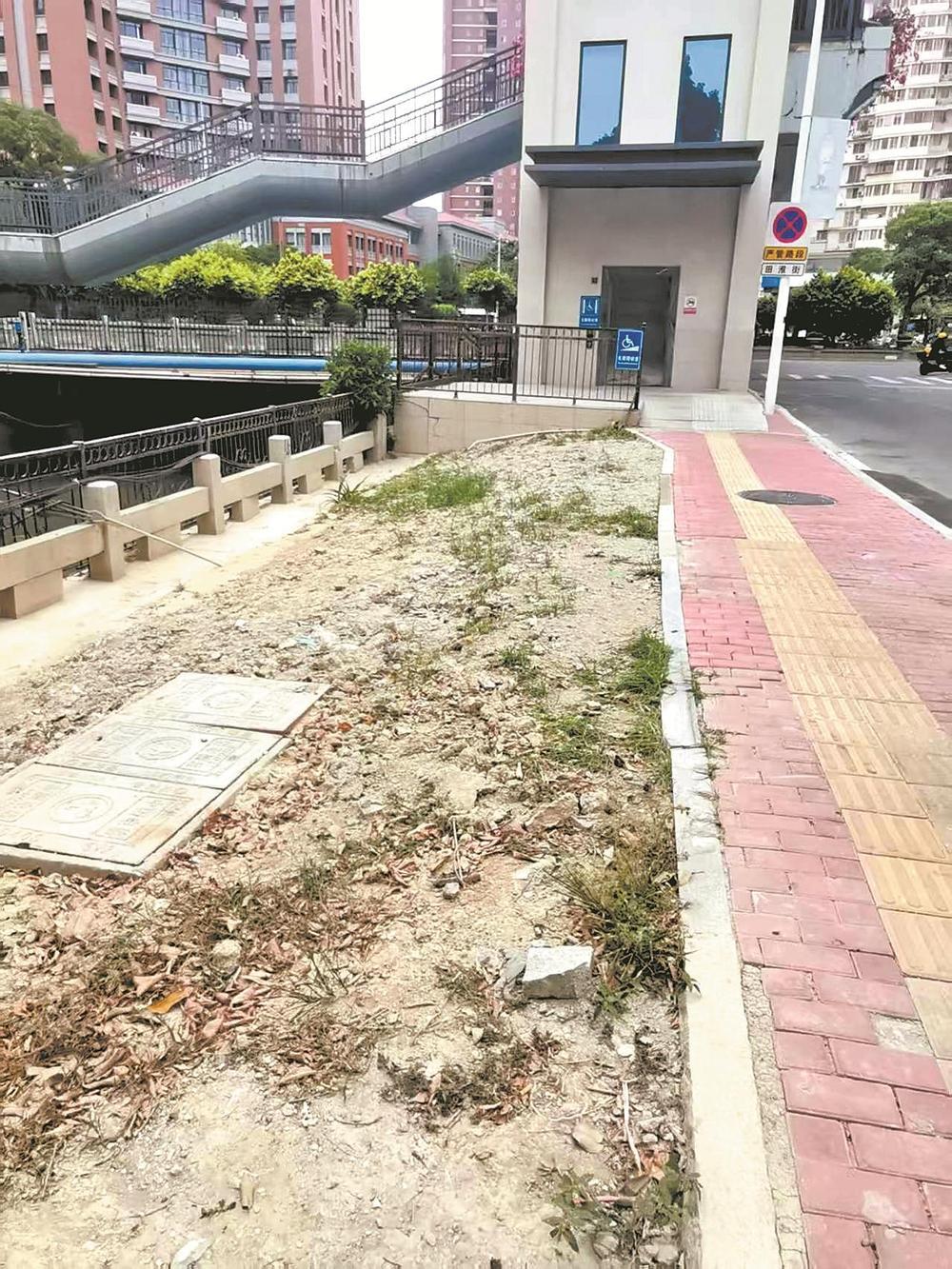 读者陈女士反映的情况就位于田淮街刺桐路口至祥远路路口。记者看到,该路段有一百多米的绿化带缺株、黄土裸露,部分绿化带上面满是石子和枯枝落叶,零星长着几丛杂草,但路边已没有石子。此外,绿化带的路缘石出现塌陷,存在绊倒他人的风险。