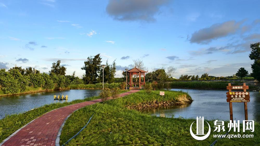 许厝闽南水乡生态节点是锦阳溪3处生态节点中的一处,也是此次改造的点睛之笔。全新打造的红砖与蚵壳拼接的景观墙透着浓郁的闽南风情,曾经的泥泞土路铺上了沥青与草皮,不仅美观,也提升了通行舒适性与安全性。走在慢行步道上,可见溪水碧绿如玉,成群的白鹭掠过水面,周边的村民散步赏景、闲谈家常,享受着生态改善带来的宜居生活。