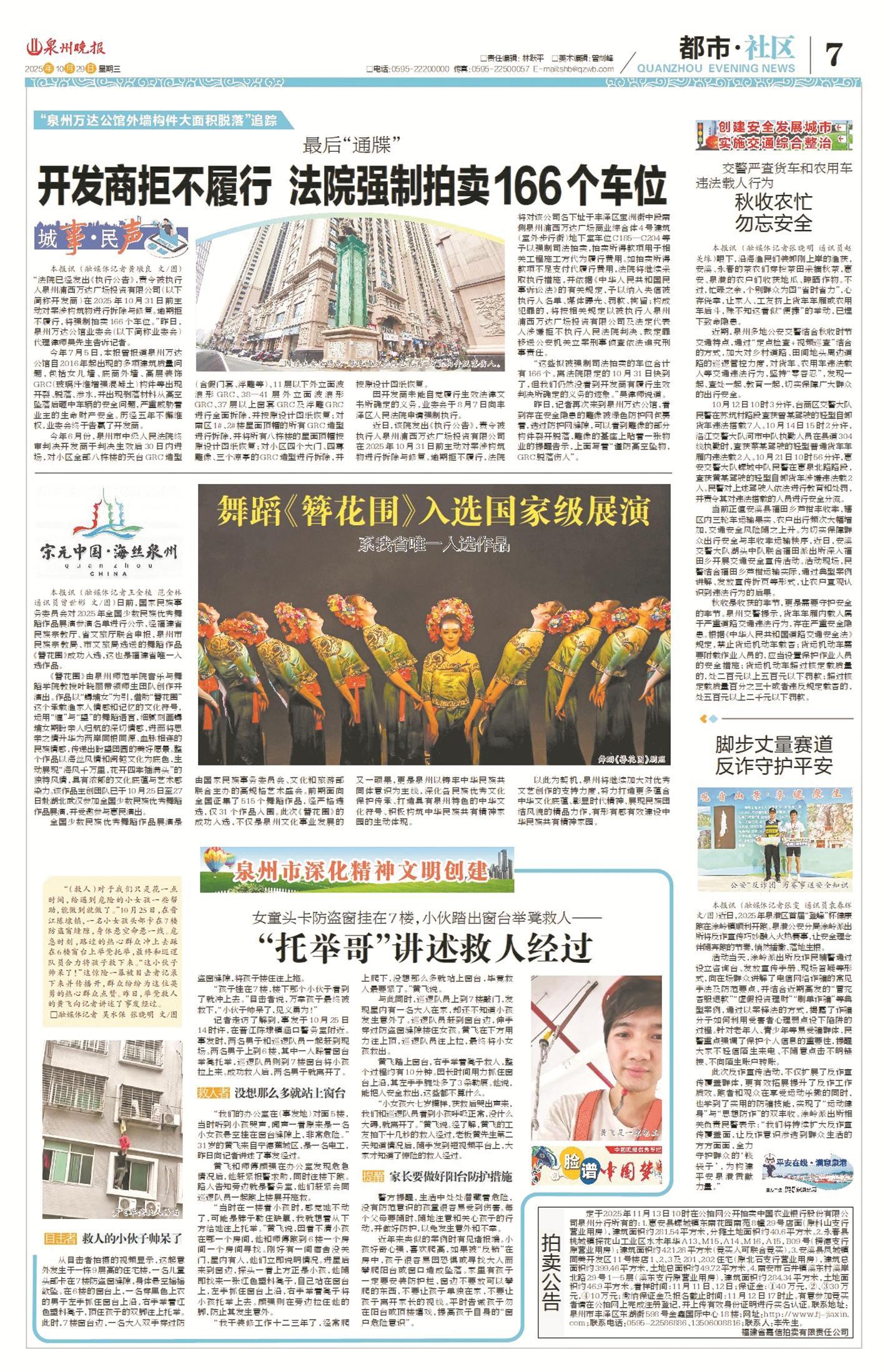 时间追溯到10月25日下午,在晋江陈埭镇涵口村,一名小女孩头部卡在7楼防盗窗缝隙,身体悬空,命悬一线。危急时刻,正在附近的黄飞发现后立即冲上楼,踩在6楼窗台上举凳托举,最终和村巡逻队员合力将孩子救下来。
