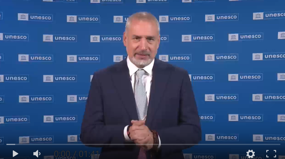 温州网讯(记者 温婉)2025年11月19日下午,在中国温州召开的2025海上丝绸之路城市合作发展大会暨国际旅行商大会主大会上,联合国教科文组织文化助理总干事埃内斯托·奥托内发表视频致辞,向温州表示热烈的祝贺。