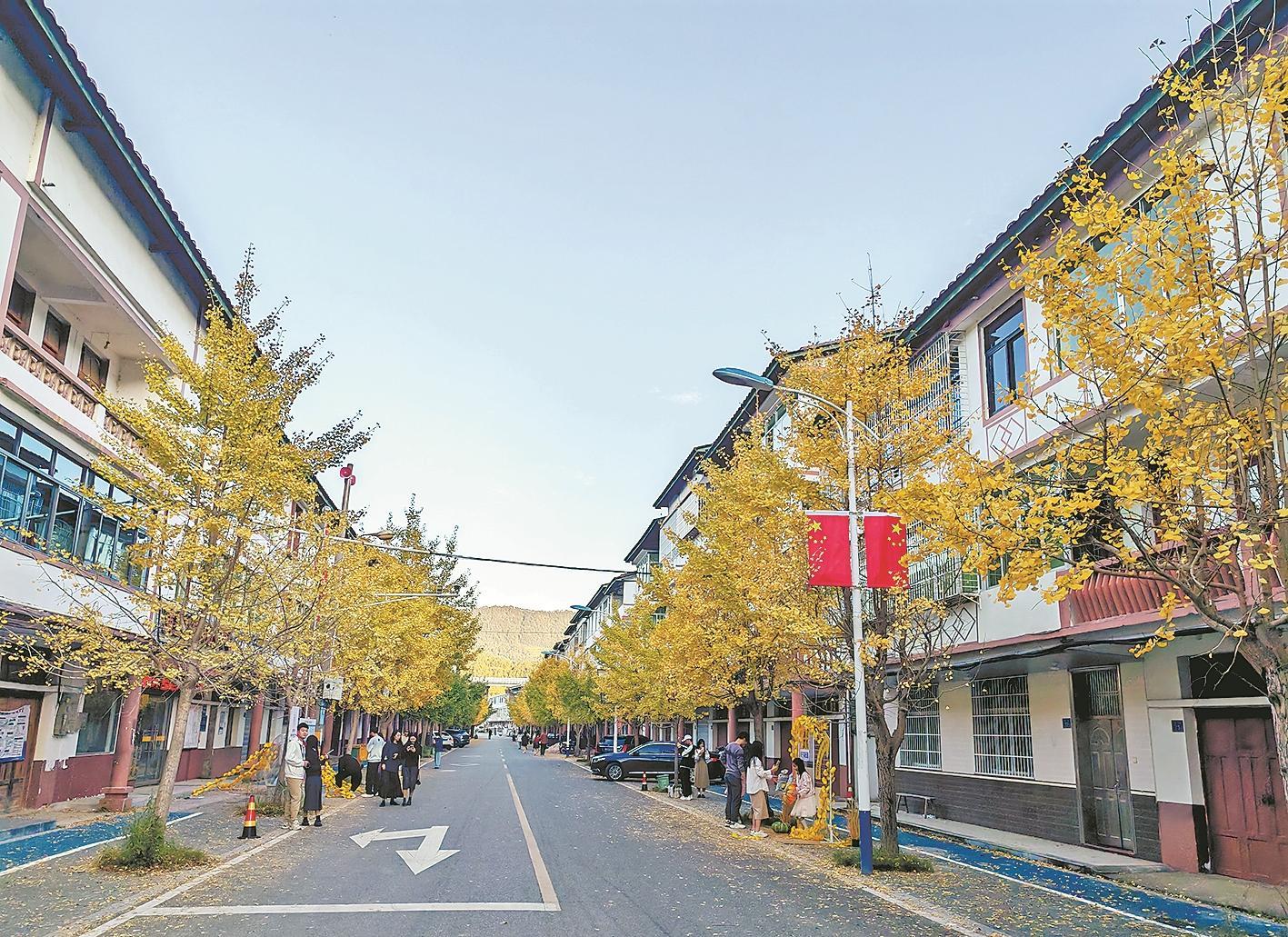 近日,德化县上涌镇东街的银杏进入最佳观赏期。道路两旁,挺拔的银杏树叶片金黄,灿若披甲,将古镇东街装点成一条流光溢彩的“黄金大道”,吸引众多游客和摄影爱好者前来拍照打卡。