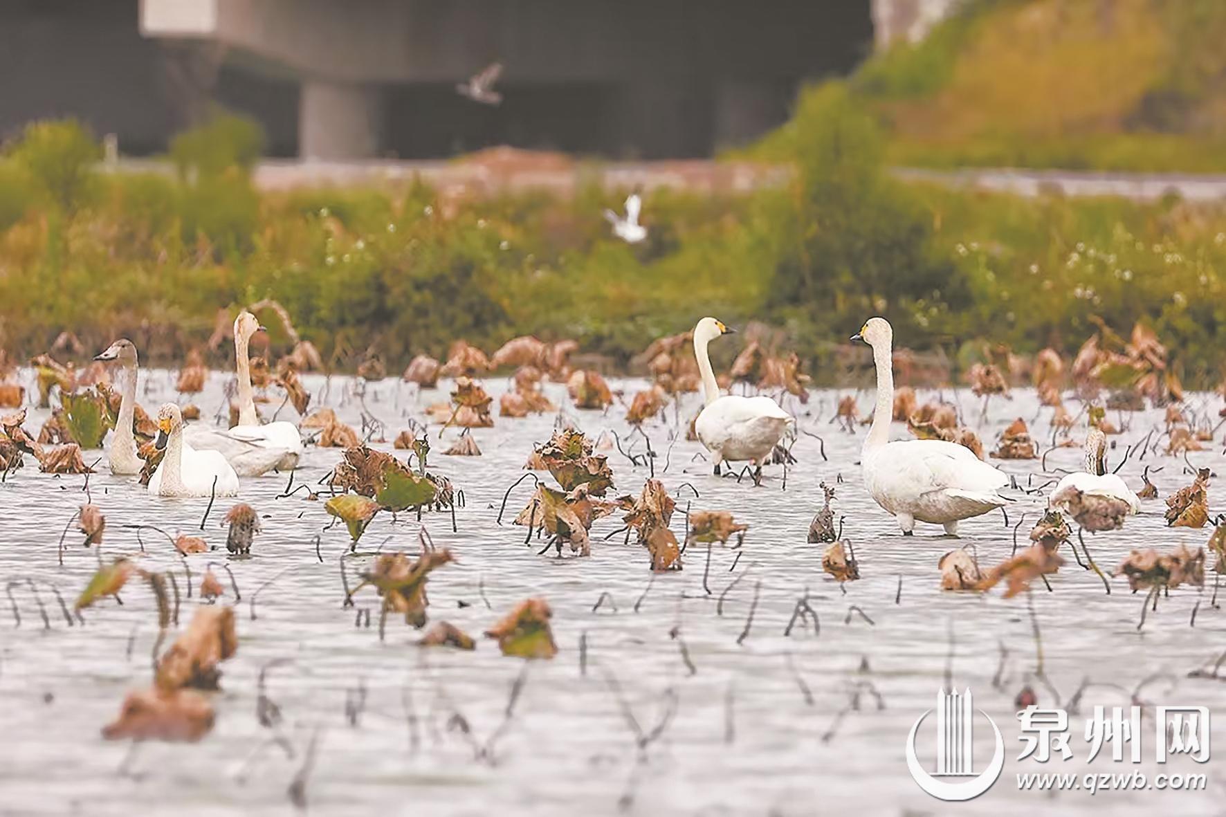作为东亚—澳大利西亚候鸟迁飞通道的关键节点,入秋以来,石狮湿地公园、泉州湾水头外线“生态贵客”不断到访。泉州市观鸟学会会长吴轲朝分析说,小天鹅到访数量不断增加,原因有两个方面:一是气候变化对原有越冬地环境的改变,让小天鹅寻找新的越冬地;另一方面,泉州湾近年来通过互花米草除治,为候鸟提供了更好的栖息和觅食条件。其中,石狮湿地公园的水生植物、昆虫和螺类,为小天鹅迁徙越冬提供了丰富的食物。
