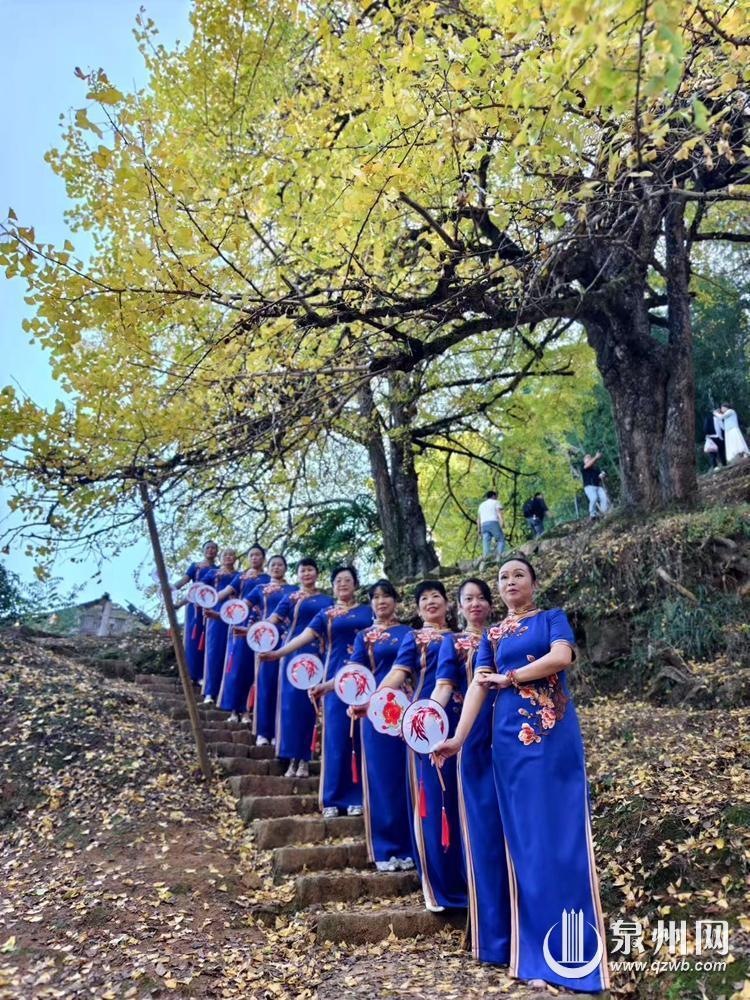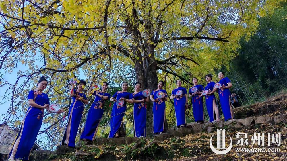 据悉,杨梅乡丁荣角落有27株树龄超500年的古银杏,是泉州唯一一处古银杏树群。其中最年长的 “银杏王” 已历经670载风雨,树高26米,树冠直径达16米,是珍贵的自然与文化“活化石”。每年这个时节,古银杏群都凭借这份原生态的美景,吸引着八方游客前来感受自然与历史交融的独特魅力。此次旗袍秀的举办,更让传统服饰文化与古村自然景观完美碰撞,为德化乡村文旅增添了一抹亮色。