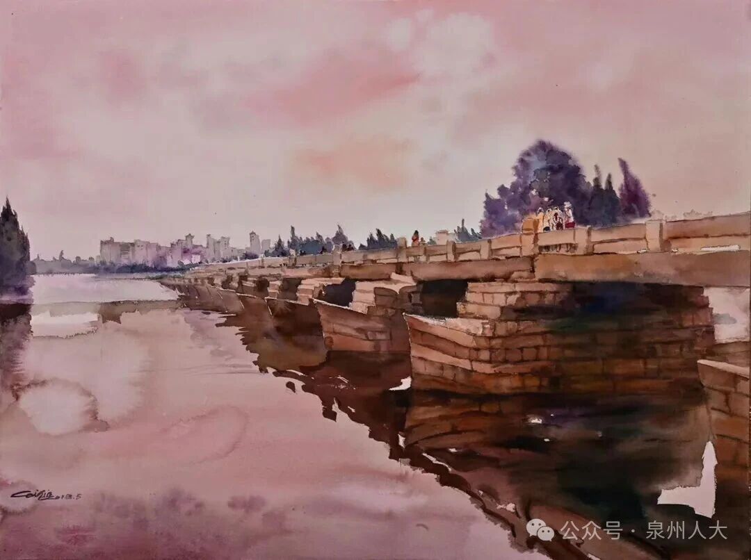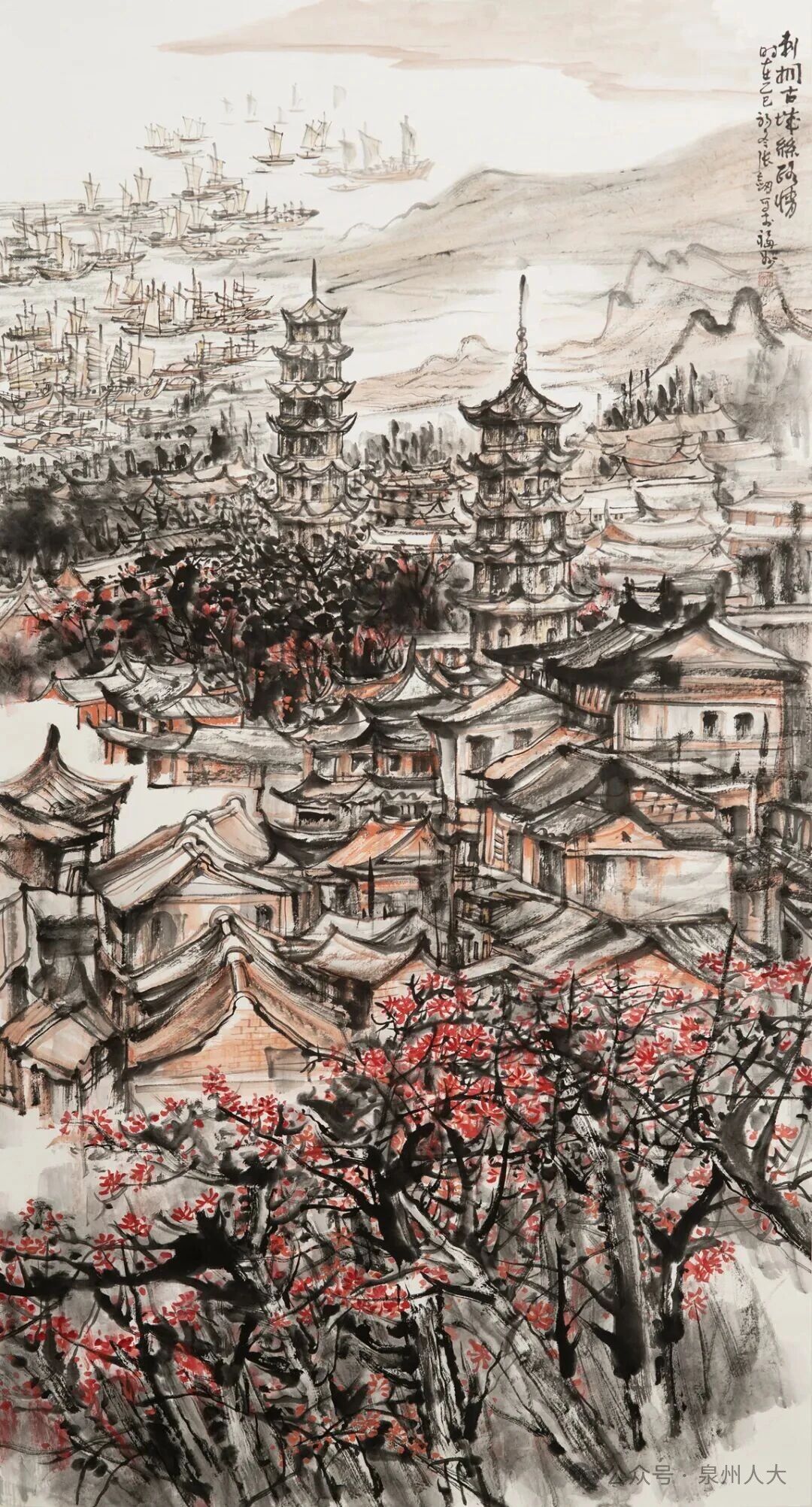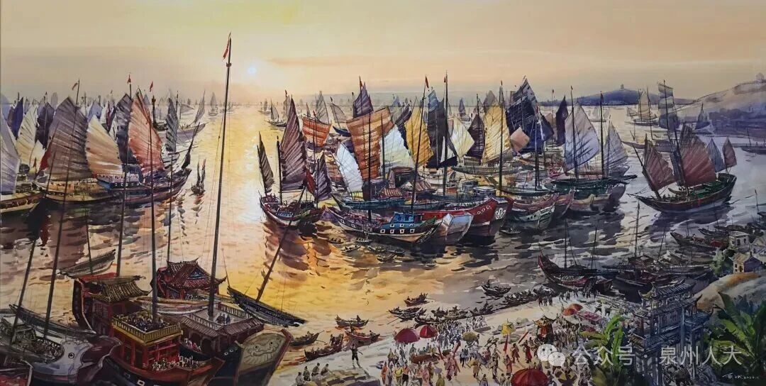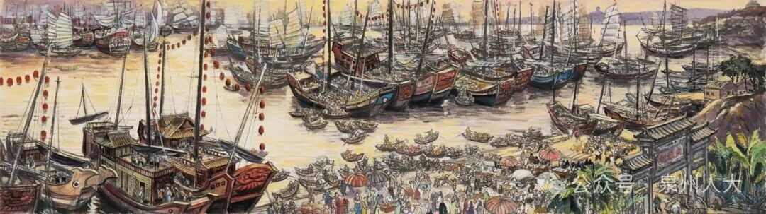 水彩画《刺桐港——东方第一大港》124cm×35cm