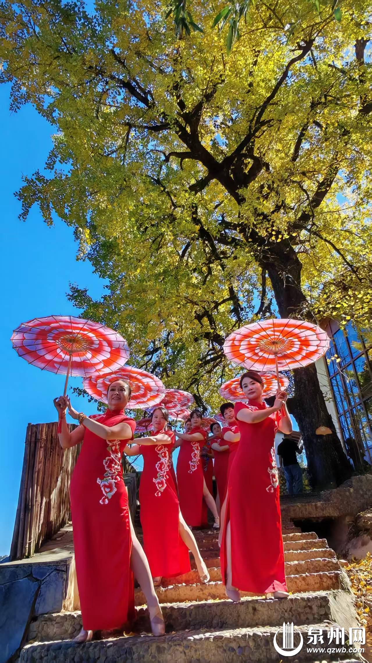 据悉,杨梅乡丁荣角落有27株树龄超500年的古银杏,是泉州唯一一处古银杏树群。此次旗袍秀的举办,让传统服饰文化与古村自然景观完美碰撞,为德化乡村文旅增添了一抹亮色。