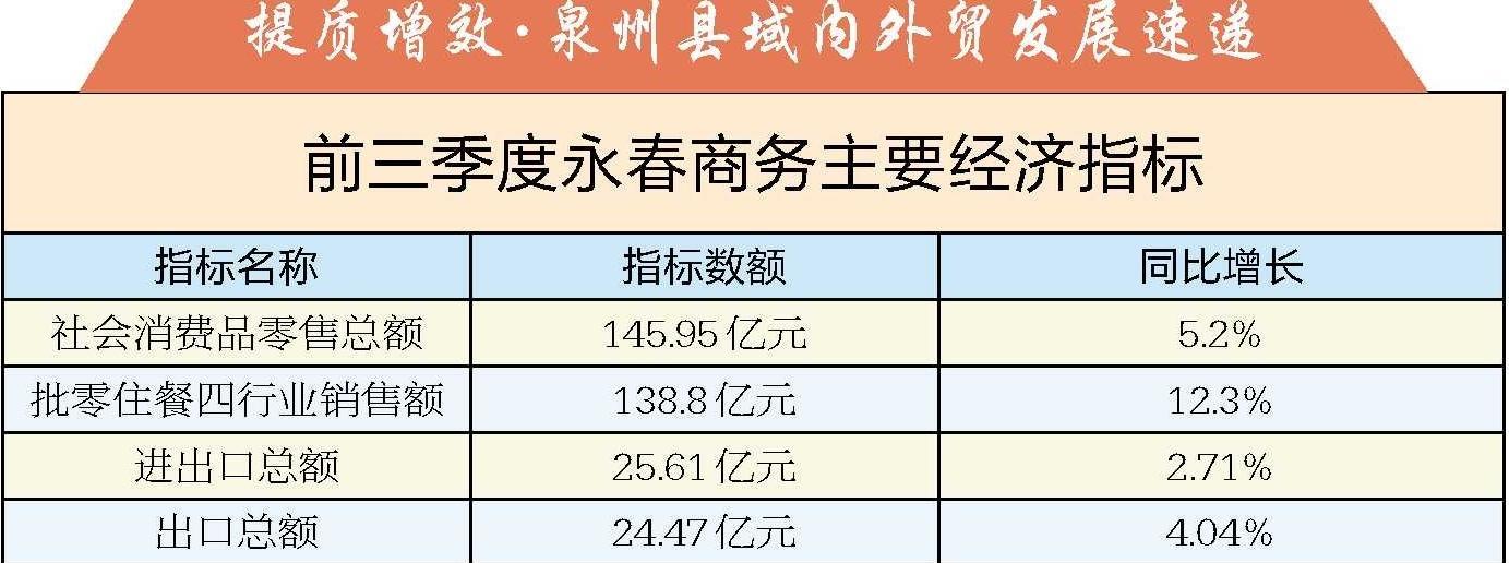 站在新的发展起点上,永春正以昂扬的姿态,持续深化内外贸协同发展,让特色产业更具竞争力、市场空间更广阔、发展动能更充沛,在县域经济高质量发展的道路上稳步前行,书写更加精彩的发展篇章。