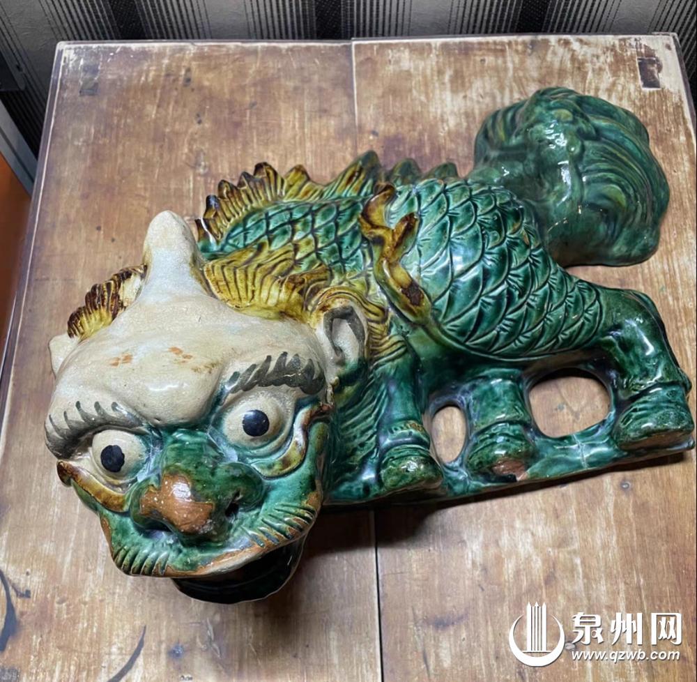 在百余年的发展中,泉州滴水兽的制作工艺历经沿革。19世纪末至20世纪30年代,滴水兽主要采用灰塑工艺,以糯米汁混合石灰为原料,彩绘上色后尽显古朴雅致,如晋江市梧林传统村落的多籽石榴造型滴水兽。20世纪20年代至50年代,则多采取剪瓷雕工艺,将彩瓷片嵌贴于灰塑坯体,色彩艳丽且耐风化,如惠安县龙苍村番仔楼上的鳌鱼、老虎造型滴水兽。随着时代发展,水泥工艺普及,催生了独立的水泥滴水兽,兼具坚固与灵动之美,如石狮市永宁镇番仔楼上的鲤鱼、佛手造型滴水兽。20世纪70年代,曾短暂出现过琉璃滴水兽,以泉港区峰尾古城观海楼的翠色鲤鱼最为著名,而同期晋江磁灶窑转型后大量烧制的陶瓷滴水兽,因产量大、价格廉成为主流,随处可见。