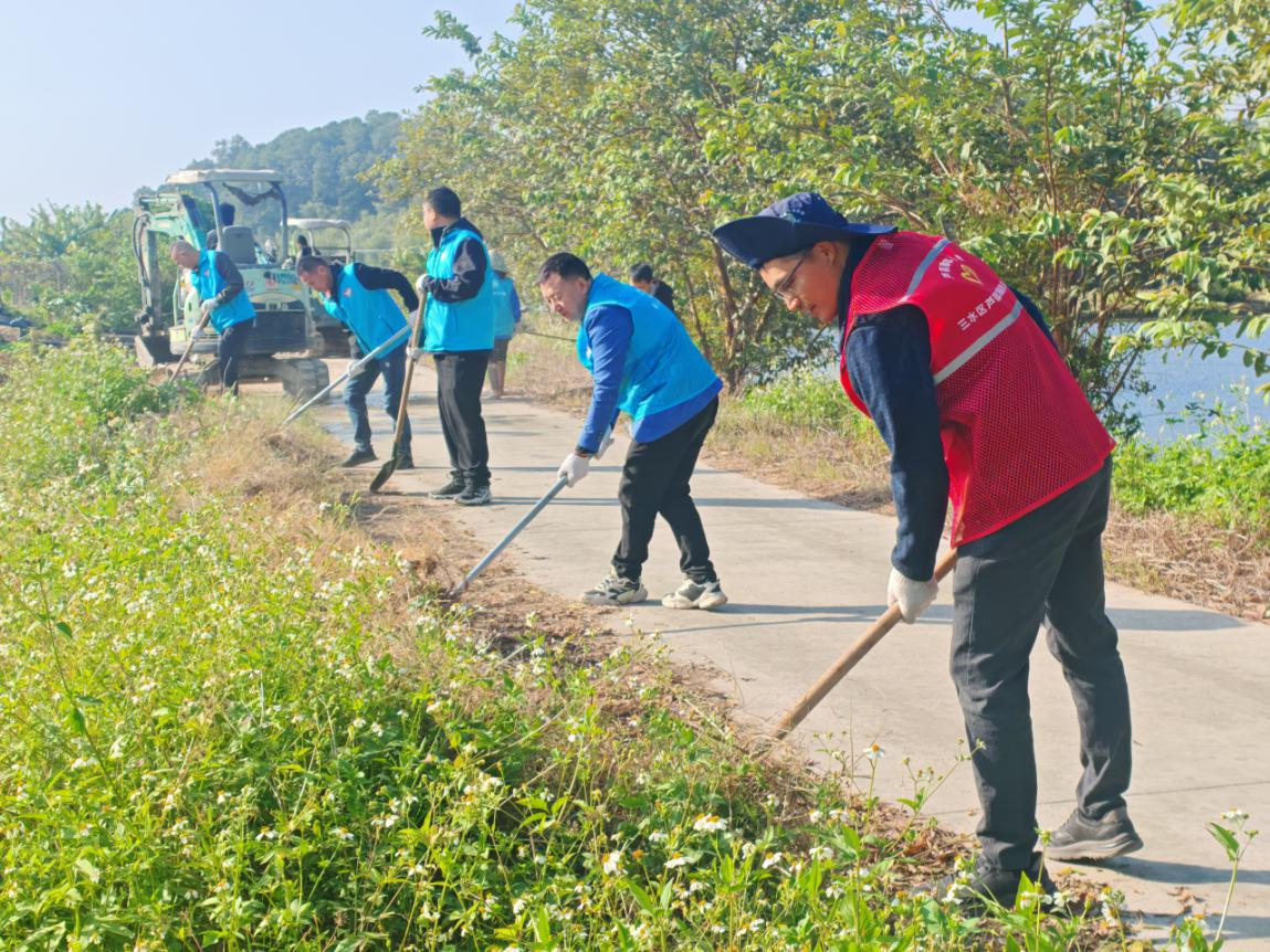 活动现场组织2台钩机、2台运输车辆和人工协同作业,对西河旧寨排渠开展清淤清杂。40多名志愿者齐上阵,分工协作,利用锄头、铁铲、电锯等工具开展清理工作,有效提升河道水塘蓄水能力、修复水生态环境、推动常态化水塘河道清淤扩面提质增效、凝聚民心共识,为提升人居环境、建设美丽乡村注入新动能。大家纷纷发扬不怕累、不怕脏的精神,分工协作,干劲十足,处处呈现一派热火朝天的繁忙景象,打通了沟渠的“梗阻”,让原本淤泥堆积的水利渠道,瞬间变得焕然一新。经过近2个小时的辛勤劳动,共清理杂树、杂草、垃圾等约20吨,清理沟渠长度约280米,有效改善河涌周边环境。