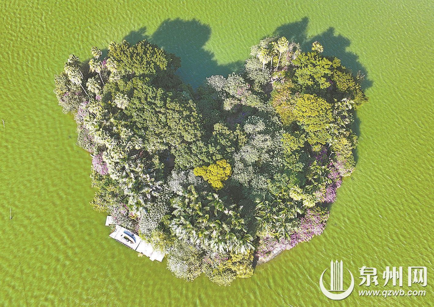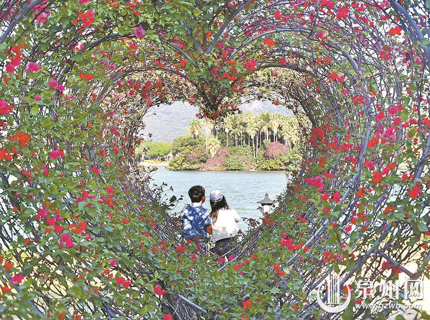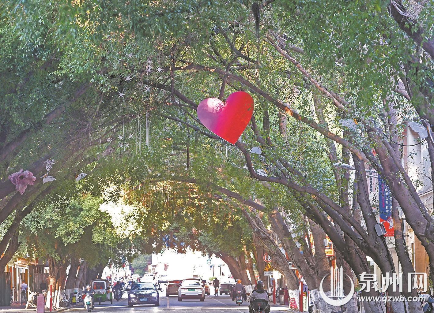 事实上,这份“爱心”惊喜在泉州并非孤例。古城金池巷内,一棵天然长成爱心形状的榕树早已是知名打卡点;南俊路上悬挂的爱心装饰,在白天也显得十分治愈;西湖公园内,通过航拍可见的心形小岛以及爱心造型的三角梅造景,都持续为这座城市的浪漫氛围加分。