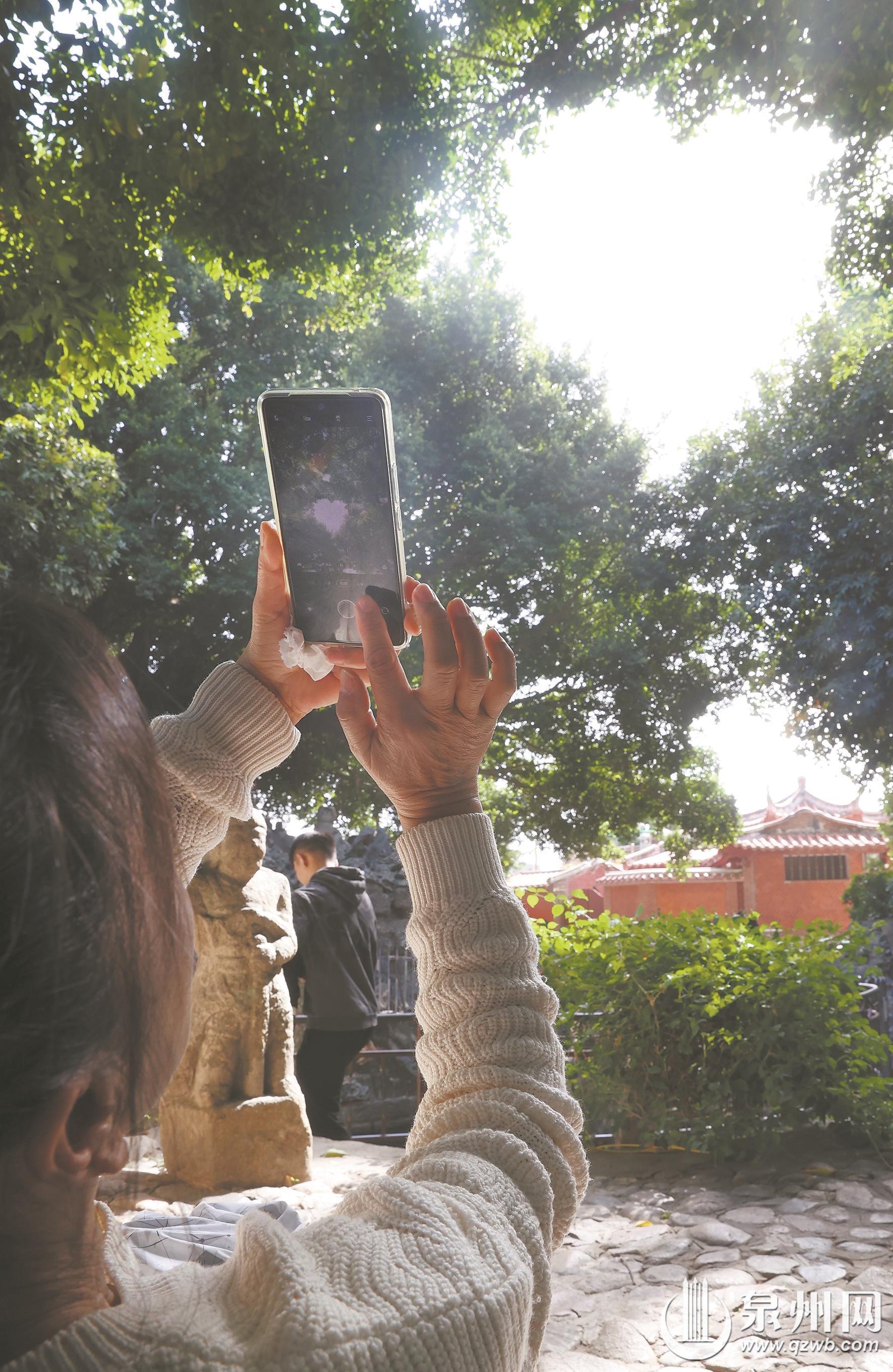 “要蹲下来才能看到完整的爱心,太惊喜了!”来自江西的陈女士已经掌握了拍摄角度。她是这两天来泉州游玩,刚好来开元寺打卡,看到很多人蹲在假山前不约而同地举起手机拍照,一时好奇就挤进去凑热闹,没想到也拍摄到一颗“爱心”,这让她兴奋不已。这股“爱心”热潮在网络上持续发酵。有网友将其与开元寺仁寿塔(西塔)前的“放心石”相联系,称其为“树之心”,寓意深刻。