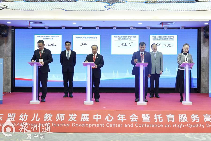 泉州网12月1日讯(泉州晚报社融媒体记者施晓亮 林志远)深秋刺桐,宾朋云集;海丝古港,智汇幼教。2025年11月29日,中国—东盟幼儿教师发展中心2025年年会暨托育服务高质量发展大会在福建泉州隆重召开。作为东道主,泉州幼儿师范高等专科学校(以下简称“泉州幼高专”)以盛会为媒,搭建起中国与东盟各国学前教育交流合作的坚实桥梁,彰显了扎根海丝、辐射东南亚的国际化办学实力,为共建更为紧密的中国—东盟命运共同体注入幼教力量。