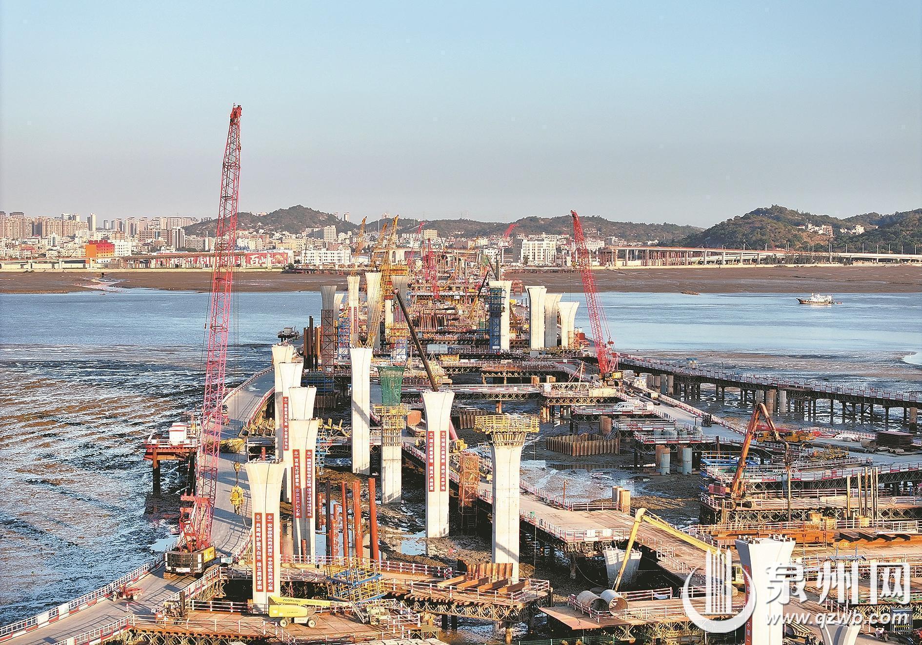 12月6日,记者拍摄的正在紧张建设中的泉州百崎大桥东海侧。