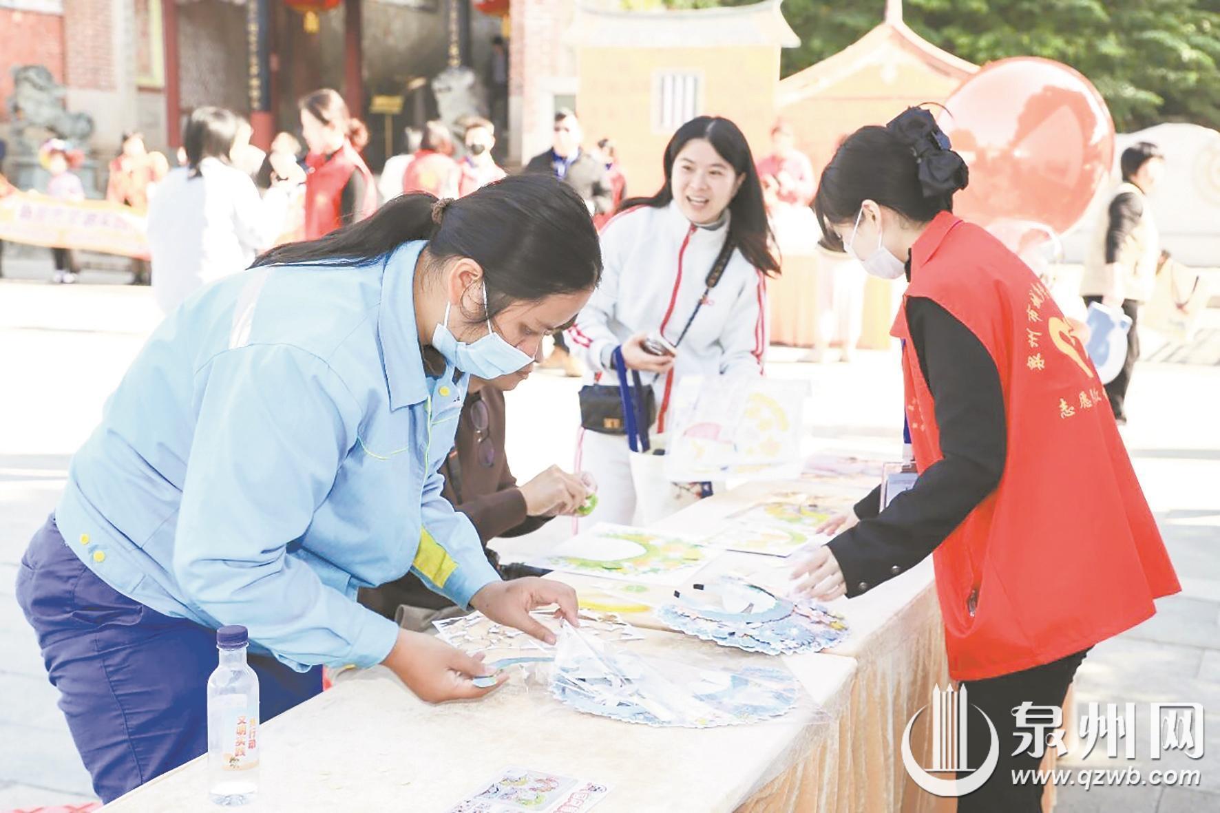 仪式结束后,举行了新时代文明实践文化文艺志愿服务项目展示。活动现场还设置了丰富的互动体验区,涵盖簪花、漆扇、泥塑、景点拼图大赛等特色项目,让群众在亲身体验中感受丰泽特有的民俗风情和历史文化魅力;国家安全知识互动展位,通过分发国家安全知识手册等形式,将总体国家安全观的理念以可感、可触的方式传递给现场群众,让大家在欢声笑语中学习国家安全知识,增强安全意识。当天上午,活动主办方还组织道德模范、身边好人、文明家庭代表、新时代文明实践志愿者代表、市民群众代表等,开展“潮涌刺桐 簪花传‘城’”新时代文明实践文化精品路线探访体验活动。