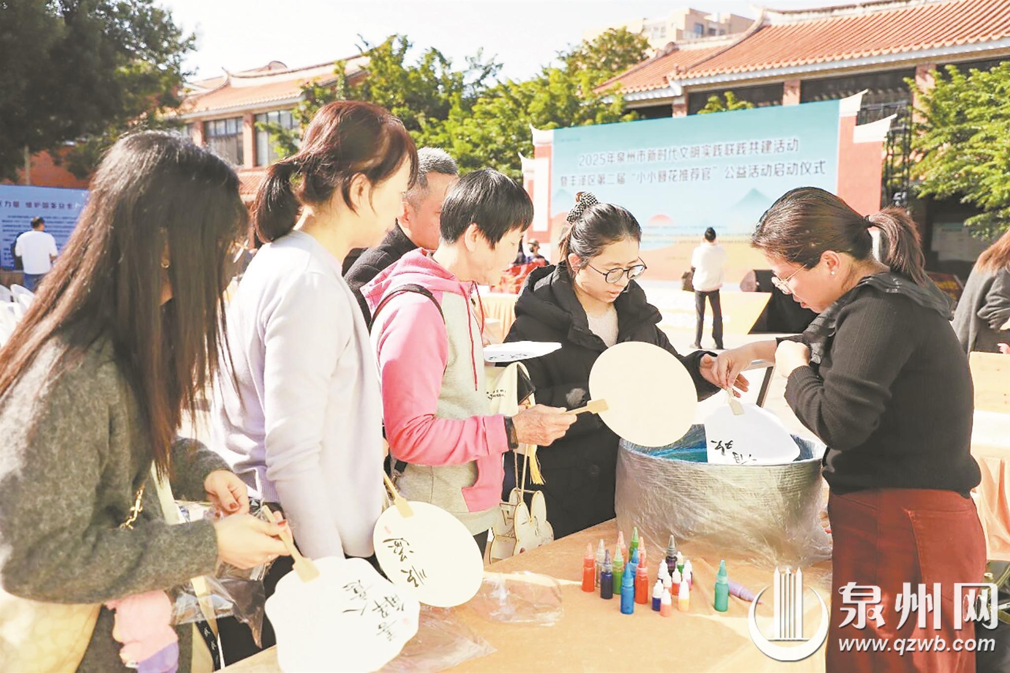 泉州网12月9日讯 (融媒体记者龚翠玲 通讯员张炜杰 陈懿 文/图)为助力城市文明建设,培育时代新风、传承优秀文化,12月5日上午,2025年泉州市新时代文明实践联践共建活动暨第二届丰泽区“小小簪花推荐官”公益活动启动仪式在真武庙广场举行。