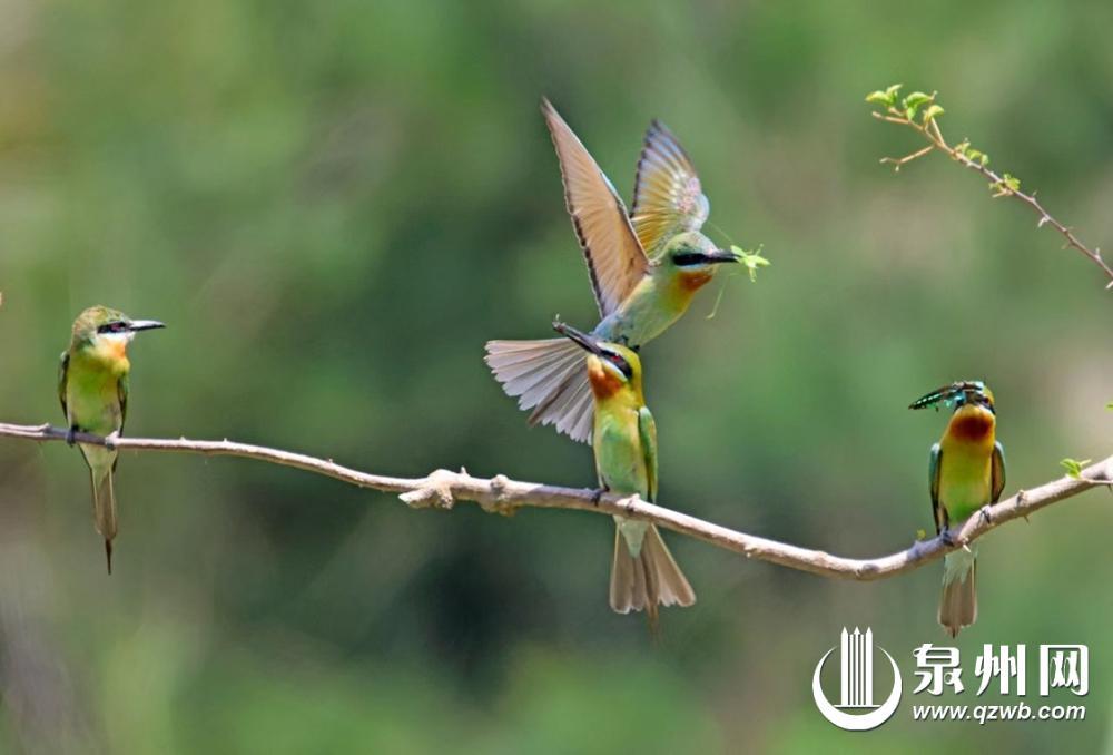 栗喉蜂虎是国家二级保护动物,被称为“中国最美小鸟”。自2022年5月以来,栗喉蜂虎已连续4年到石狮“安家产子”,石狮峡谷旅游路成为我国东南沿海地区纬度最北的栗喉蜂虎繁殖地。由于对栖息环境极为挑剔,栗喉蜂虎不喜进入留有味道或被占据的旧巢穴,每季繁殖都要筑新巢。今年2月,石狮市正式启动栗喉蜂虎5年保护规划,并在泉州地区首次对其栖息地开展保护性修复,对3年间形成的1080个巢穴进行清理修复,为栗喉蜂虎新一季的筑巢、繁殖创造条件。今年4月,百余只栗喉蜂虎如期抵达并继续在此筑巢产子,初步验证了该栖息地保护性修复工作的成功。据泉州市观鸟学会会员们在出巢期监测记录,本季栗喉蜂虎出巢数量达230多只,较往年略有提升。