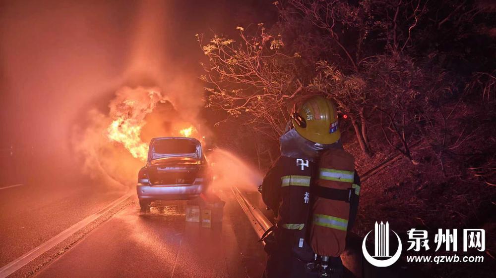 泉州网12月23日讯(融媒体记者傅恒 通讯员黄开明 郭云霞 文/图)12月19日晚9时49分许,泉港区消防救援大队接到报警称,泉港往泉州市区方向的高速公路上,距离驿坂服务区1公里处,一辆小车车头突然着火。泉港区消防救援大队立即派员赶赴现场处置。