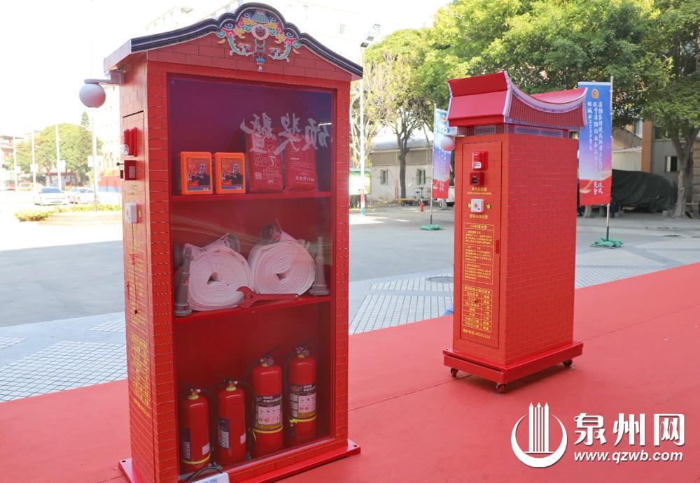 古城一批消防器材便民取用点启用,其外观设计融入闽南古厝特色。