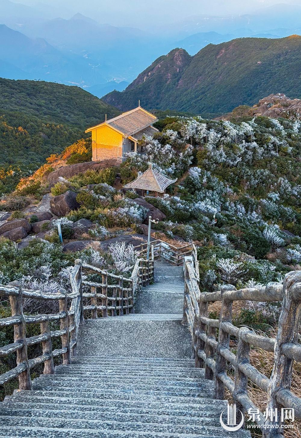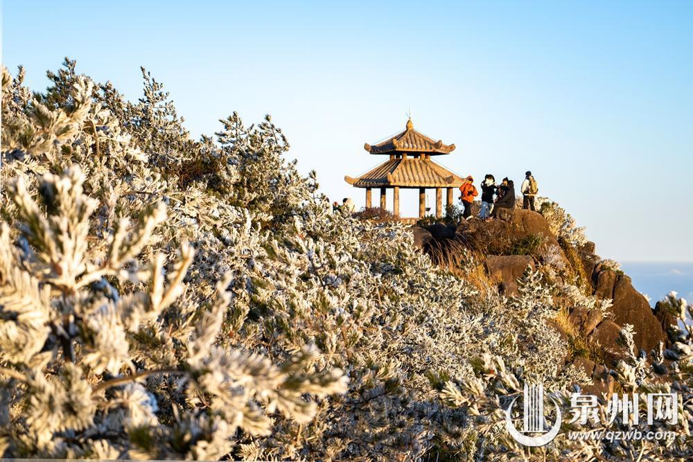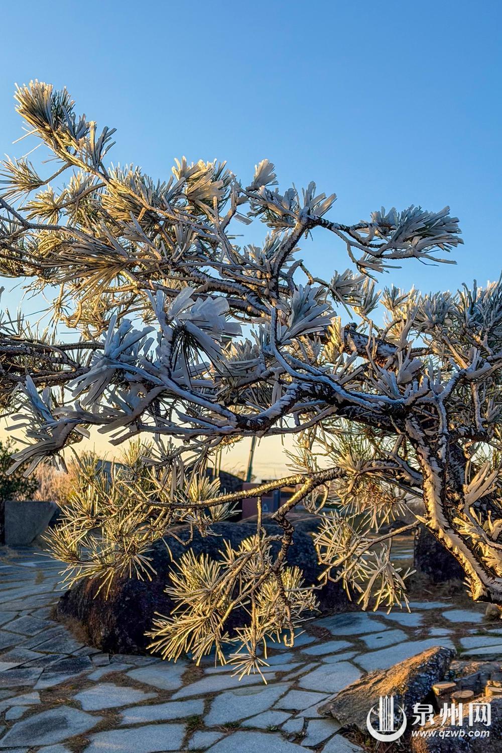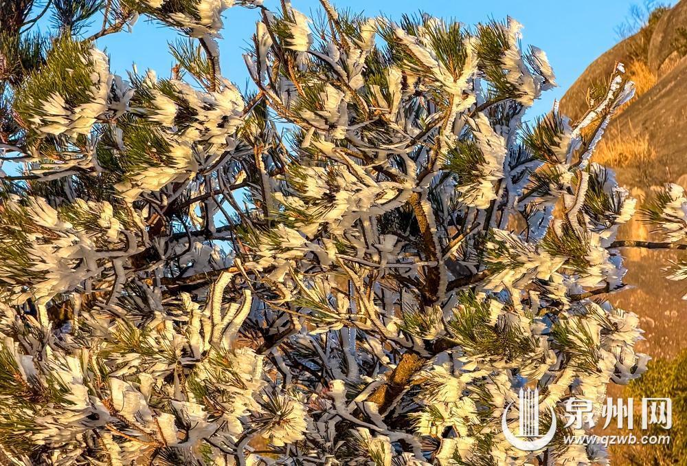 12月25日夜间至26日清晨,山风凛冽,寒气汹涌,泉州德化九仙山、石牛山悄然凝结出雾凇。清晨,冰晶轻柔缀满枝头,松针垂落如水晶流苏,林木披上通透霜衣。这场雾凇,虽因风力较强未形成厚重冰挂,却以疏朗清雅的姿态,为群山点缀出冬日的灵气。日出时分,霞光穿透雾凇林间,冰晶顷刻浸染金晖,光芒在枝梢轻盈流转。寒夜的清冷与朝霞的温暖在此相遇,勾勒出一幅静谧而璀璨的山林画卷。随着太阳升高,雾凇渐渐融化,然而,这短暂却清澈的晶莹,宛如自然为闽南岁末写下的诗意注脚——在2025年即将落幕之时,以一场纯净的邂逅,留存一份属于冬日的宁静记忆。(通讯员 赖建明 黄龙俣 融媒体记者 陈起拓 陈小芬 图/文)