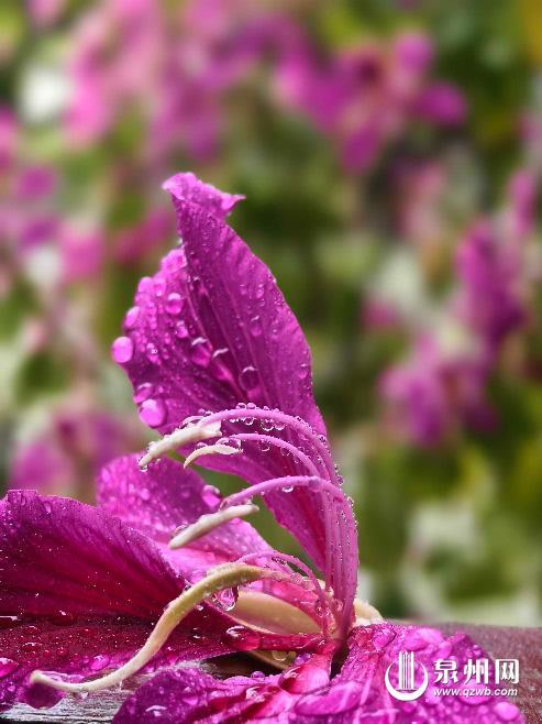 这哪里是萧瑟的冬日,分明是独属于泉州的浪漫“花季”。羊蹄甲的花期虽短,但这一刻的绚烂足以治愈整个寒冬。雨后的空气带着湿冷,脚下的花瓣却柔软而温暖。在这片粉色的海洋里,你会发现,泉州的冬天,一半是烟火,一半是诗意。
