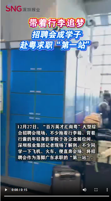 深圳新闻网2025年12月27日讯 名企云集、岗位海量、人气火爆,各招聘展位前人潮涌动,求职者络绎不绝。12月27-28日,“百万英才汇南粤”大型综合招聘会在深圳举行,以一系列创新举措和丰厚待遇生动诠释了广东“筑巢引凤”的强大磁力。