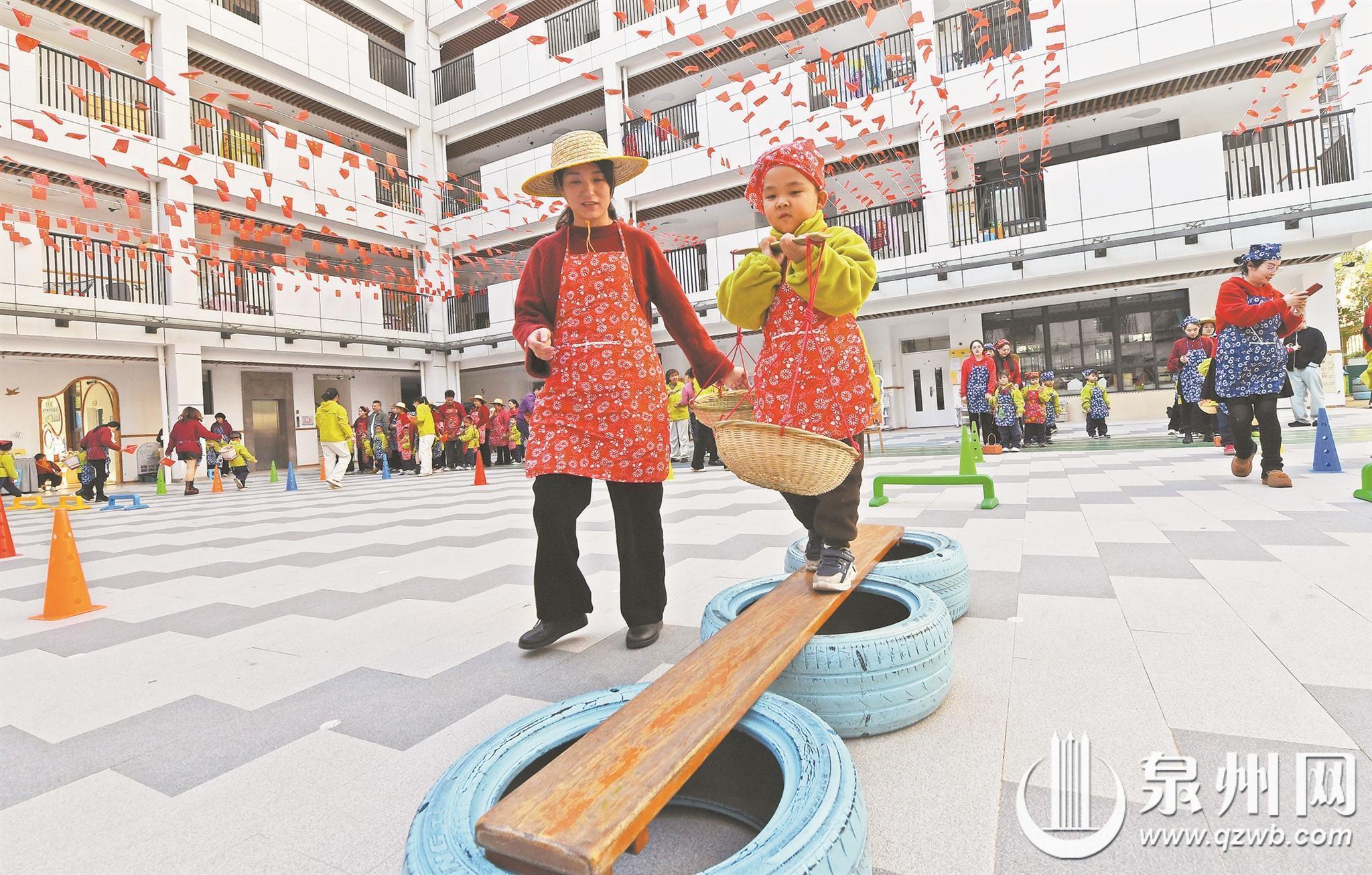 昨日,在泉州市泉港区第五实验幼儿园的操场上,首届农耕体育节暨庆元旦活动欢乐进行,笑声与呐喊声汇聚成快乐的海洋。学校将农耕文化与体育活动融合,精心设计了“农耕趣·箩筐娃娃行”“推车运粮”“地瓜扁担平衡乐”等趣味场景。活动激发了孩子们的探索欲,让他们体会了传统农耕的辛劳与乐趣。