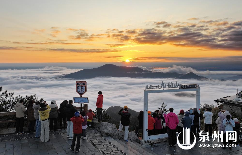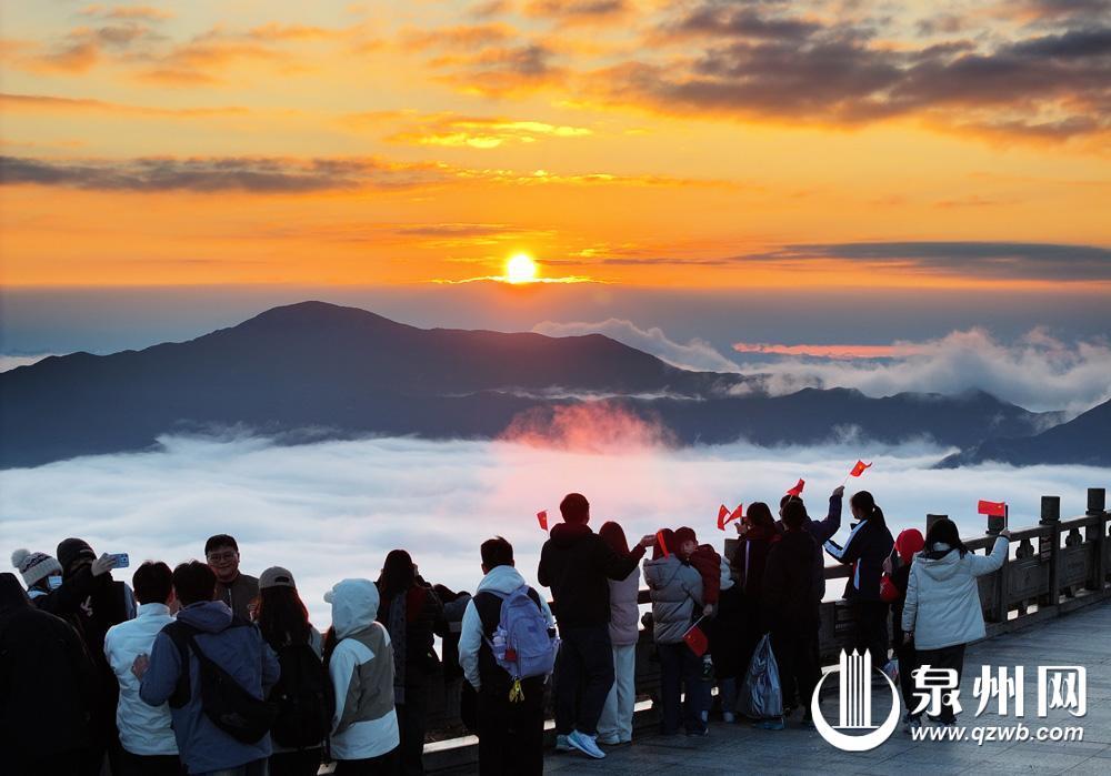 昨日,游客们在德化县九仙山迎接2026年第一缕阳光。(张九强 摄)