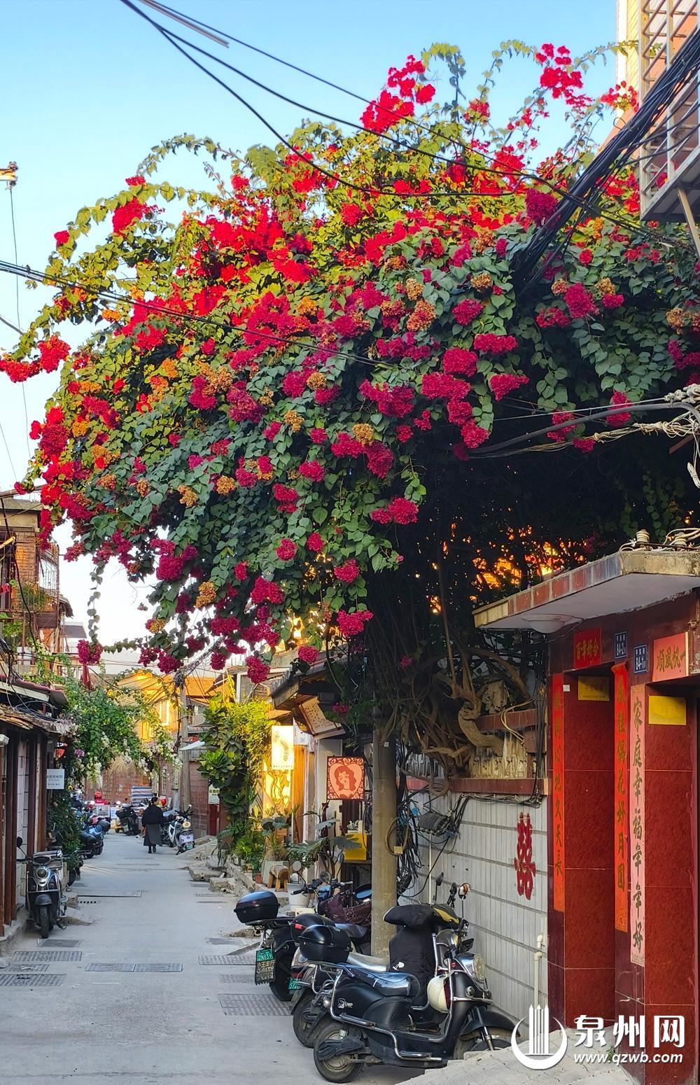 “这些花开在冬天,给人一种既温暖又充满希望的感觉。”一位本地居民表示,自己每天路过花墙时心情都会更加轻松。据了解,三角梅非常适应泉州的气候条件,花期跨越秋冬。近期天气晴好、日照充足,古城多处花景迎来最佳观赏期,为冬日街头增添了鲜艳活泼的气息。(融媒体记者庄丽祥 摄影报道)