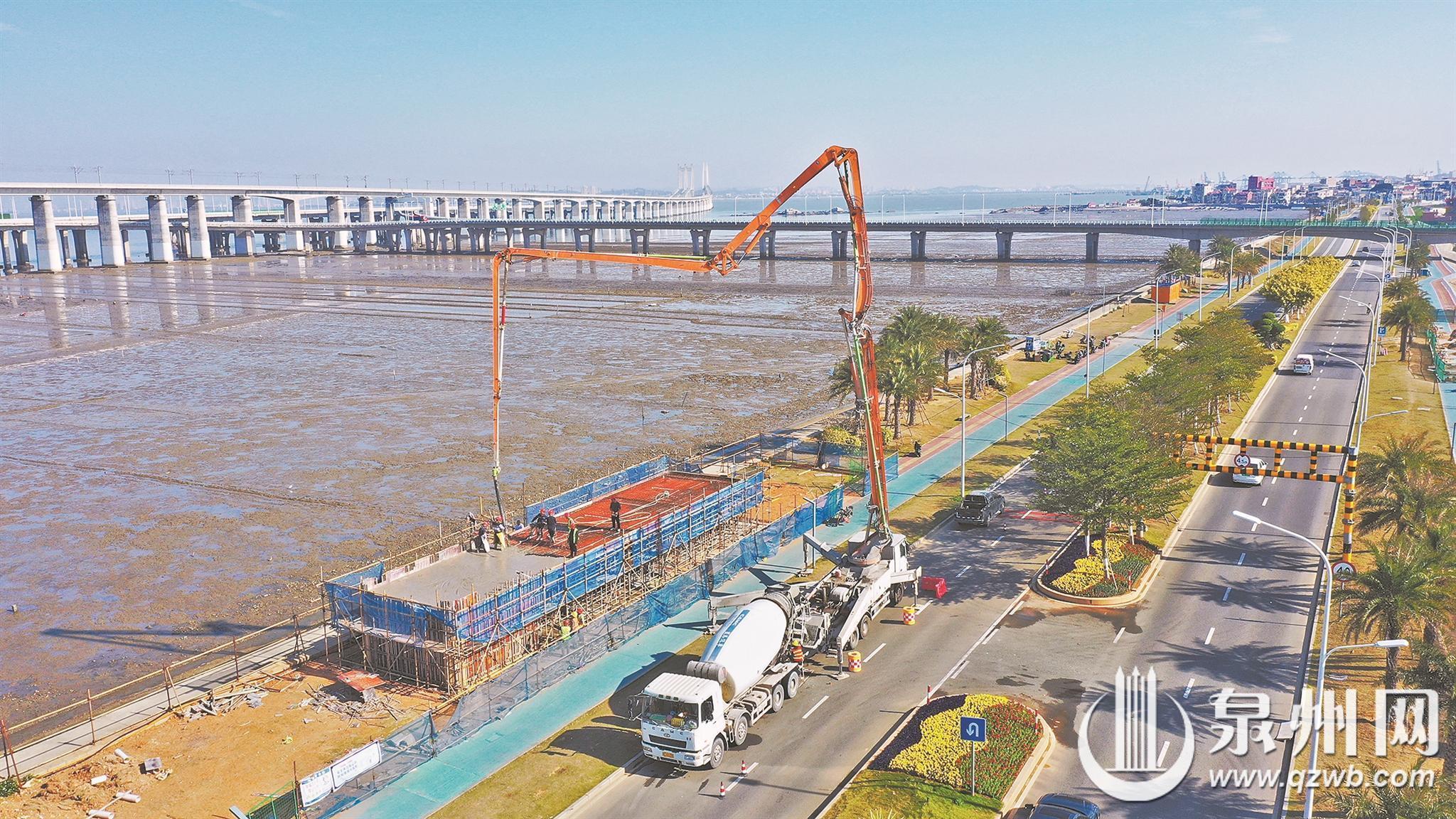 近日,记者在石狮锦江外线湿地公园段临海区域看到,作为石狮市“一县一溪一特色”乡村振兴精准提升(一期)项目——蚶江沟基础设施与生态整治建设项目的关键节点,“服务驿站”工程建设现场一片繁忙,施工人员正紧张有序地进行主体楼板的混凝土浇筑作业,标志着该工程正式进入主体结构收尾阶段。该项目旨在通过系统性提升,改善区域生态环境,完善配套服务设施,打造滨海特色景观带。项目建成投用后,将进一步带动沿线乡村发展,绘就“生态美、产业兴、百姓富”的乡村振兴新画卷。(融媒体记者陈小阳 王树帆 通讯员兰良增 颜华杰 摄)