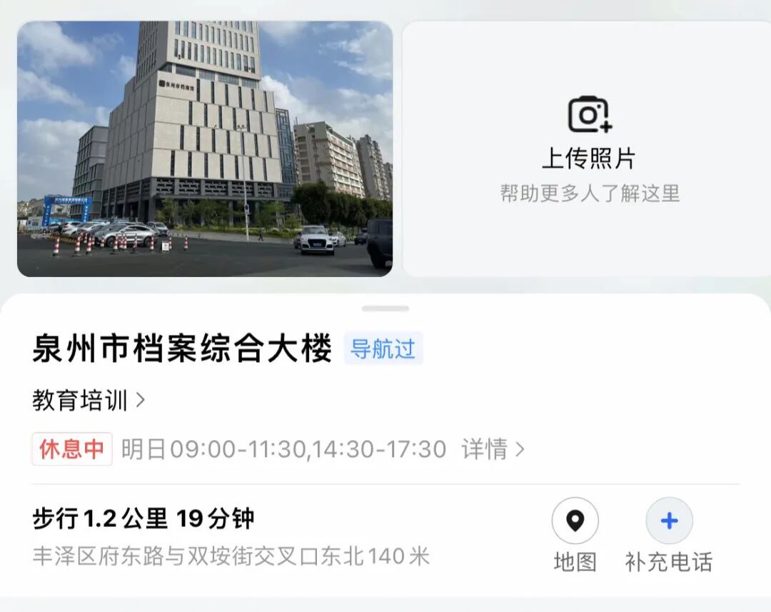 导航路线:位置填写“泉州市档案综合大楼”或“泉州市应急管理局”。