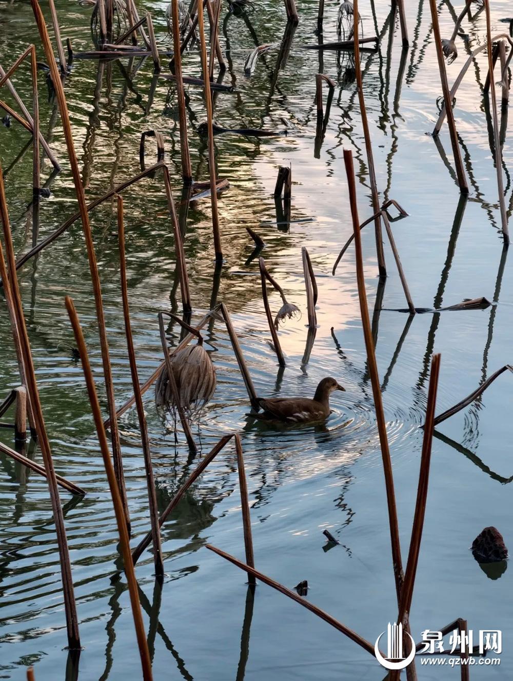 休闲看点:当东湖公园的“星湖荷香”褪去盛夏的喧嚣,一场属于冬日的寂静盛宴正悄然上演。残荷之美是中国人独有的生命哲思:枯黄的荷叶低垂水面,蜷曲的茎秆斜倚风中,仿佛一位历经沧桑的老者,以佝偻之躯诠释着生命最后的坚韧。水面如镜,倒映着枝干交错的黑白线条,宛若一幅留白万千的水墨长卷。褪尽了夏日的浓墨重彩,此刻的荷塘,只剩下枝干嶙峋的剪影,静静依偎着一池冬水。没有了蜂蝶的喧嚣,也没有了绿叶红花的拥挤,它变得空灵、通透,像一幅用最简练笔触勾勒出的水墨画。这是属于中国人才懂的意境,是“留得枯荷听雨声”的寂寥,是繁华落尽见真淳的从容,是一种阅尽千帆后的沉静与力量。而这时,一只鸭子的闯入打破了这片沉寂。它摇摆着身子游过涟漪轻推残荷,晃动倒影仿佛在宣纸上晕开一抹淡墨。这一刻,萧瑟与鲜活碰撞,寂寥与生机共存。冬日的残荷,看似衰败,实则是在孕育新生。水面之下肥硕的莲藕正静待采撷,为来年的绽放积蓄力量。这枯荣轮回恰如人生起伏繁华落尽后,方显内在的从容与力量。