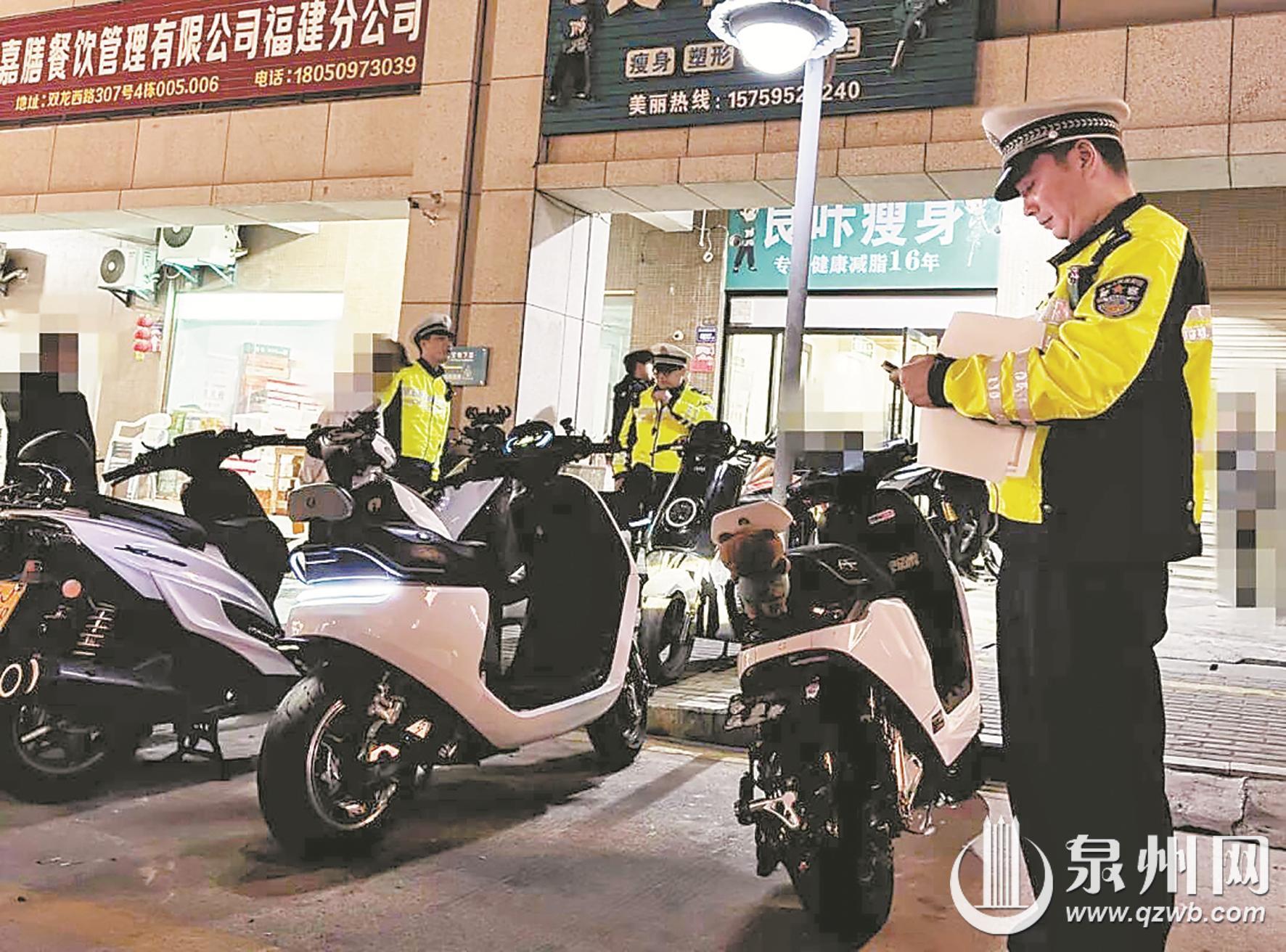 1月7日10时8分许,晋江交警大队陈埭中队民警在陈埭镇七一路执勤时,查获林某驾驶的电动自行车涉嫌非法改装。同日16时51分许,惠安交警大队山霞片区中队民警在涂寨镇翔豪路段执勤时,查获陈某驾驶的电动摩托车涉嫌非法改装。1月10日11时6分许,惠安交警大队螺城片区中队民警在世纪大道天山广场路段执勤时,查获庄某驾驶的电动摩托车涉嫌非法改装。目前民警已责令上述车主将车辆恢复原状,并依法对其进行教育和处罚,及时消除安全隐患。