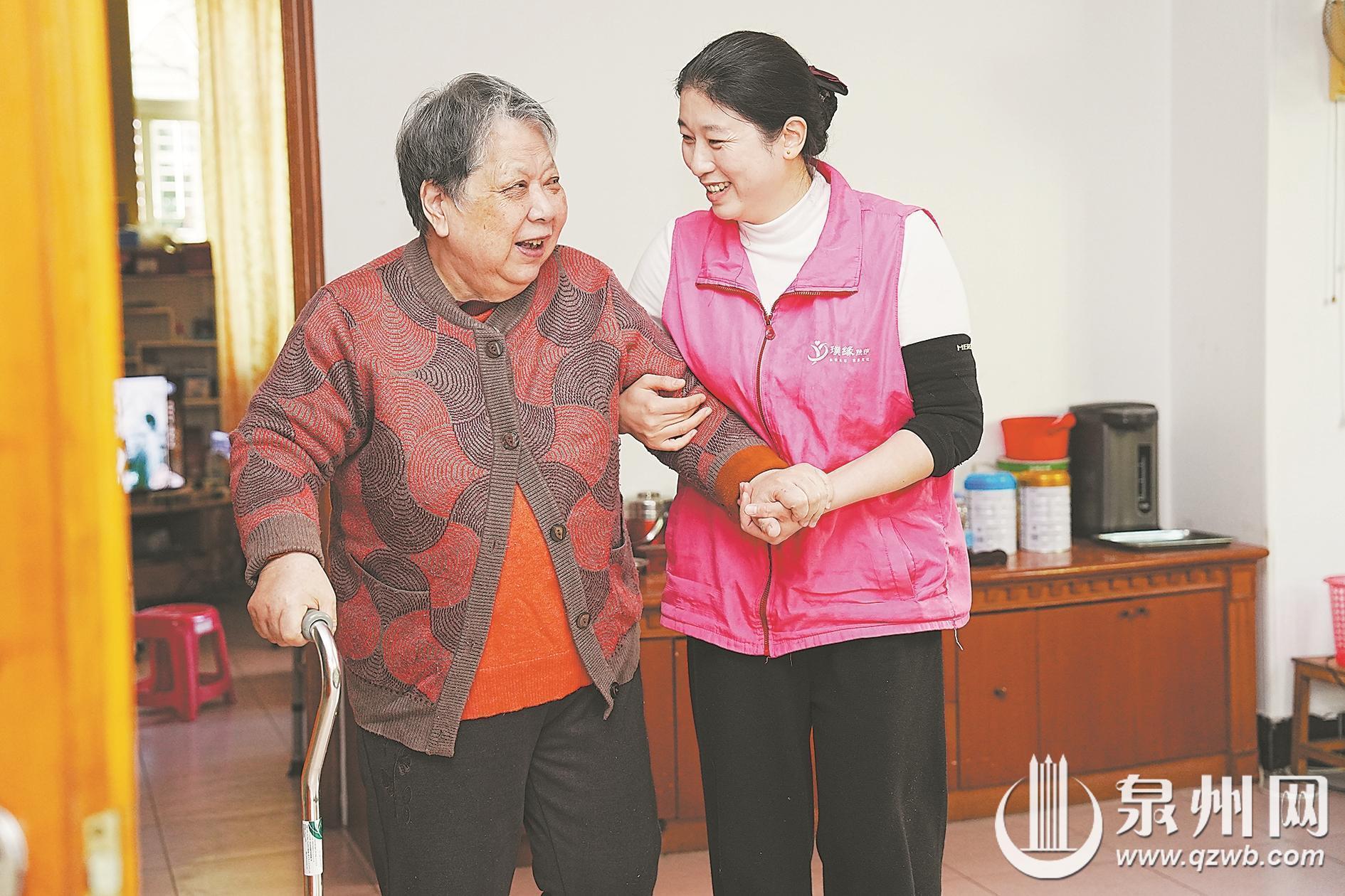 “阿丽,你来啦!”上午9点,38岁的李春丽准时叩响晋江青阳街道张老伯家的门,85岁的张老伯和78岁的施阿婆笑着和她打招呼。当天,李春丽为施阿婆提供一对一护理服务,1.5小时内细致地完成洗发、淋浴、剪指甲、肩背与腿部按摩等流程,还搀扶老人散步,专业又暖心。