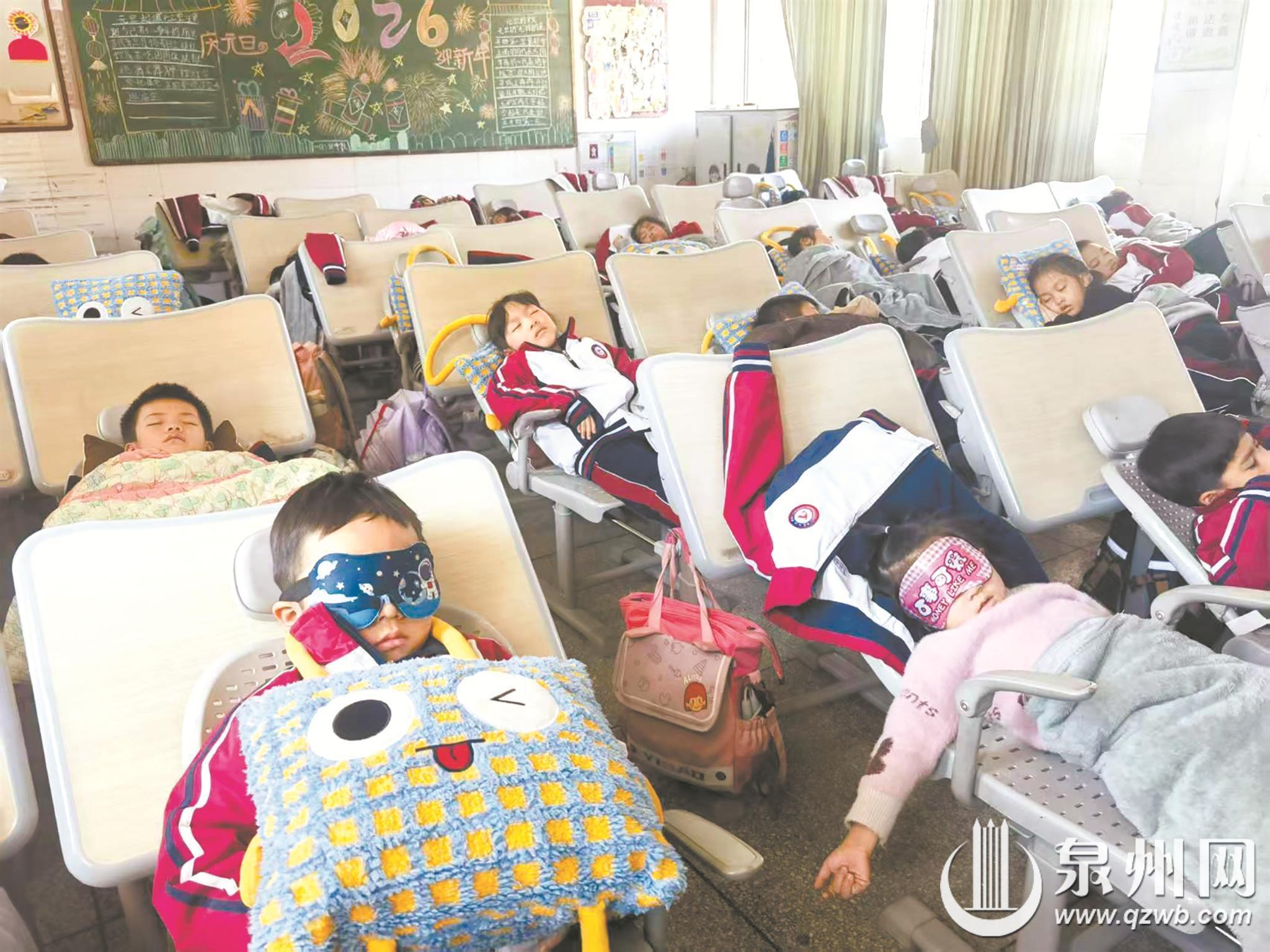 “大家收拾一下桌子,准备午休了!”昨日中午,在石狮市灵秀镇古洋小学的一间教室里,伴随着值班老师的提醒,学生们熟练地调整起课桌椅——推椅背、拉椅脚。短短几分钟,座椅便转换成躺椅,教室变成安静的午休空间。