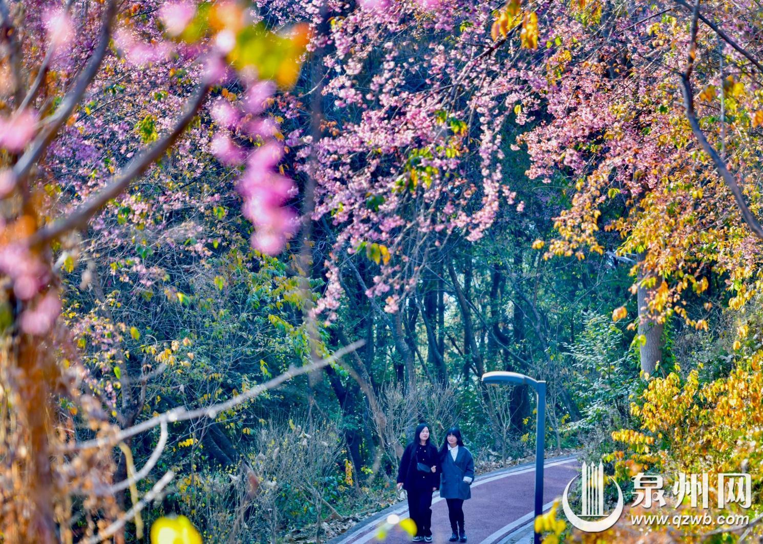 近日,在德化唐寨山森林公园,冬樱花竞相绽放,漫山粉霞随风流转,如诗如画的花海为山城铺就了一幅绚丽的生态画卷,吸引着市民游客纷至沓来,尽享人与自然相融的惬意时光。从唐寨山的生态氧吧到遍布城区的口袋公园,从畅通的交通路网到精细化的城市治理,德化将生态之美融入城市肌理,让群众在四季流转中感受城市发展的温度与质感。(融媒体记者陈小阳 颜雅婷 通讯员许华森 摄)
