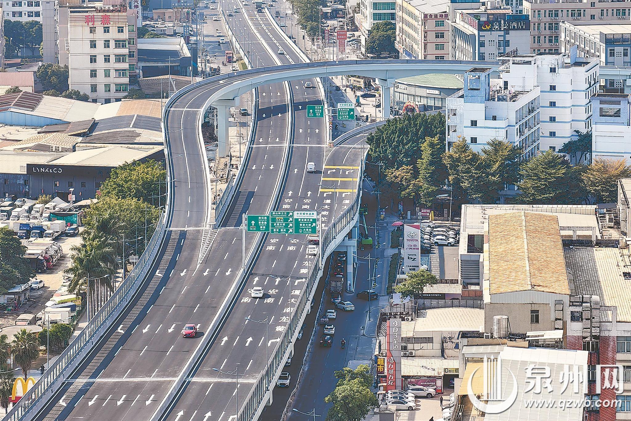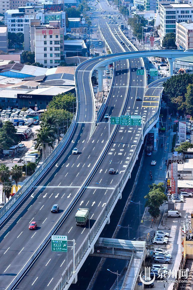 昨日,随着南环路快捷化改造路段通车,泉州中环城快速路(市区段)实现全线通车。作为中心市区内部第一条真正意义上的环城快速路,泉州中环城快速路全长43.8公里,总投资30.25亿元,跨越丰泽、鲤城、晋江等区域,分为市区段和晋江段,依托老君大道、联丰大街等既有快速路,新增改造黄龙大道、池峰路、南环路等路段,最终形成中心市区闭环快速交通体系。其中,市区段包括黄龙北大道、黄龙南大道、南环路—池峰路和新旧普贤路交叉口等快捷化改造工程。 (融媒体记者陈起拓 王树帆 摄)