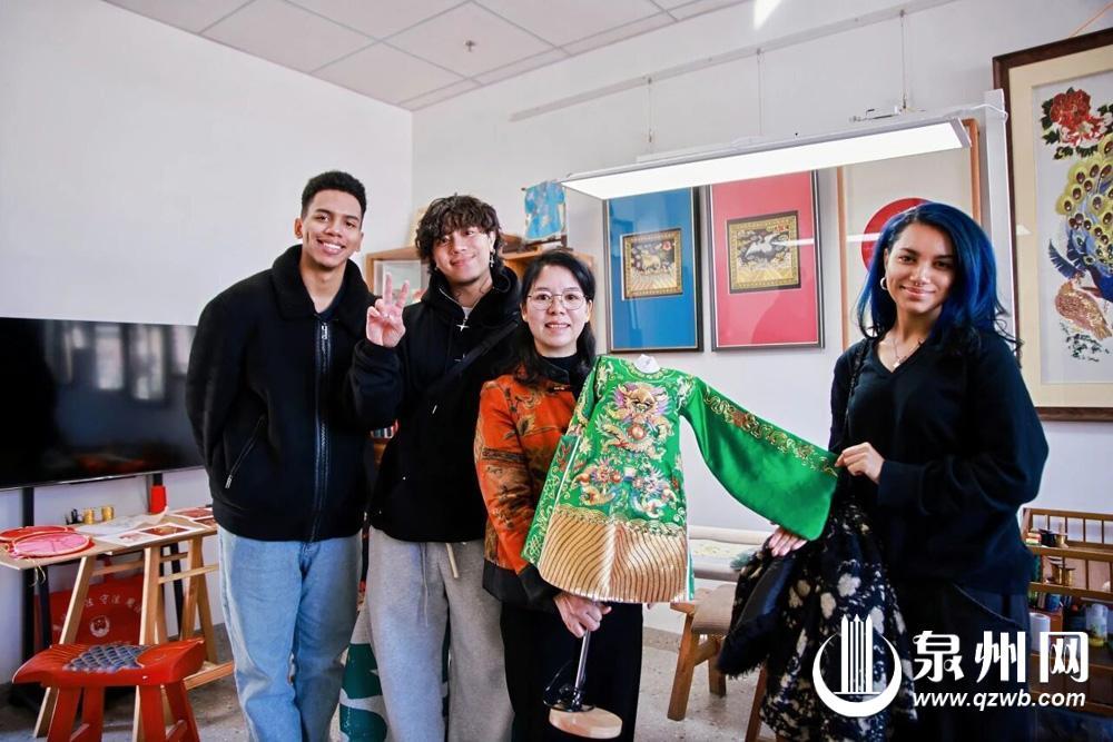 美国的EDC舞团拥有超千万粉丝。泉州文化之旅的第一天,在非遗传承人吴心治的带领下,他们上手体验了金苍绣制作,其灵动的手法让吴老师忍不住直呼“太有天赋了”。这场沉浸式的探访,让舞团成员们直观感受到了泉州传统文化的深厚底蕴。