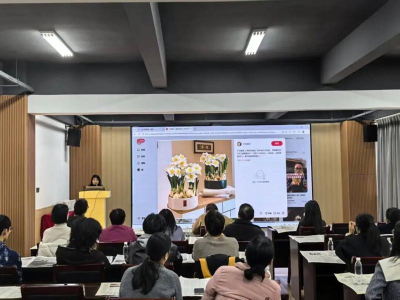 活动中,区“党建+”邻里中心(区新时代文明实践中心)邀请水仙花雕刻技艺传承人现场授课,从水仙球茎的挑选技巧,"三分刻七分养"的技艺精髓,到净化,开盖,疏隙,剥苞,削叶等核心步骤,结合实物演示逐一拆解,强调雕刻时既要保护花苞根茎,又要通过造型设计赋予水仙独特神韵。