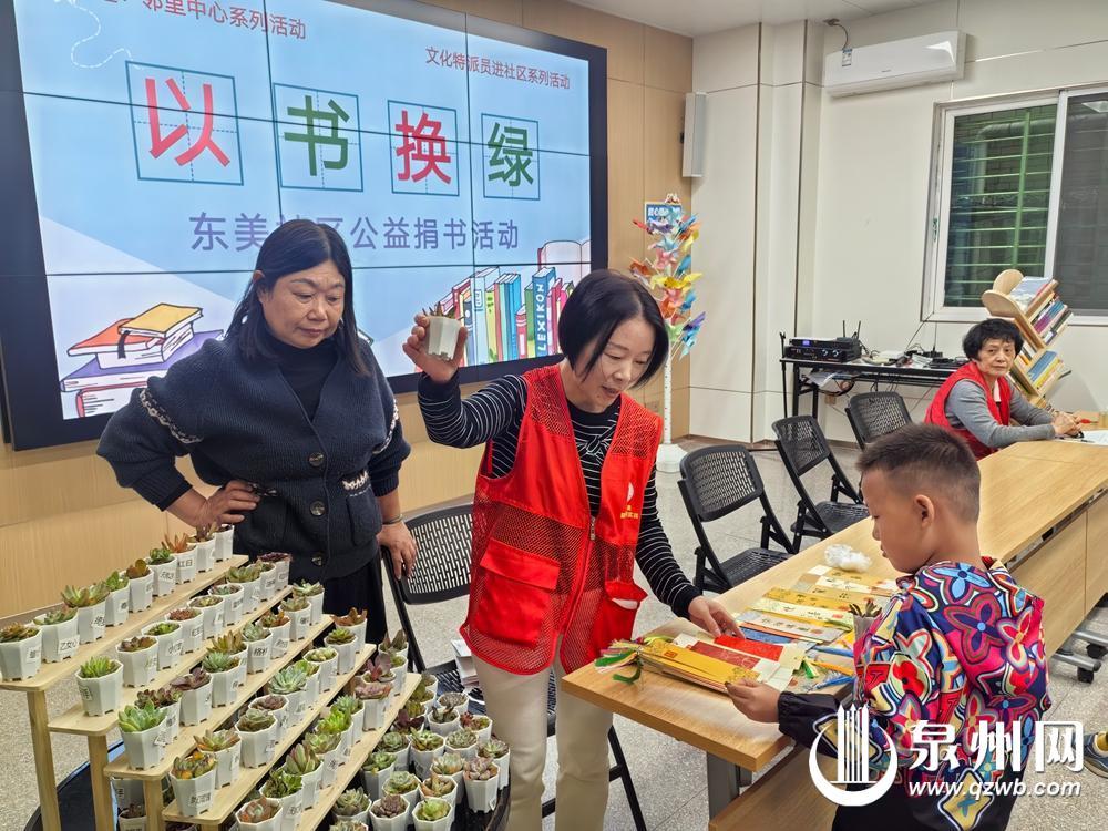 捐书换绿植,孩子为社区建设出力。