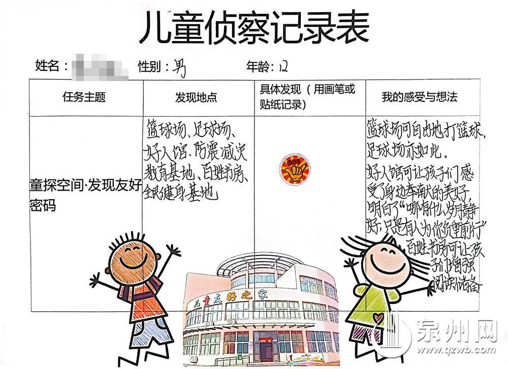 儿童友好观察员的侦察记录表(惠安县妇联 供图)