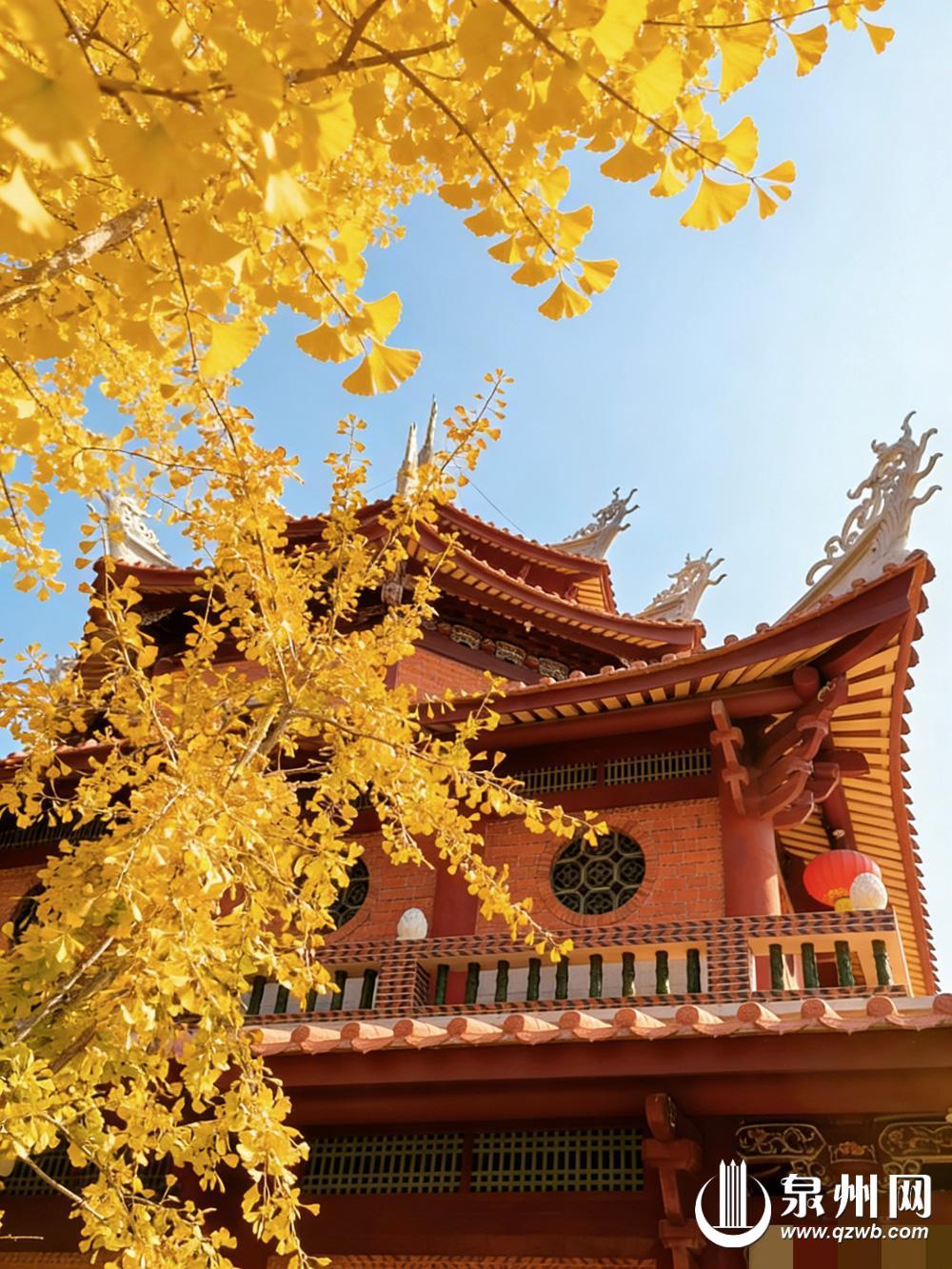 泉州市区承天寺内的银杏当下正值观赏佳期,满树金黄在阳光下格外耀眼,给古寺的冬日平添一份暖意和温馨。(梅子/摄)