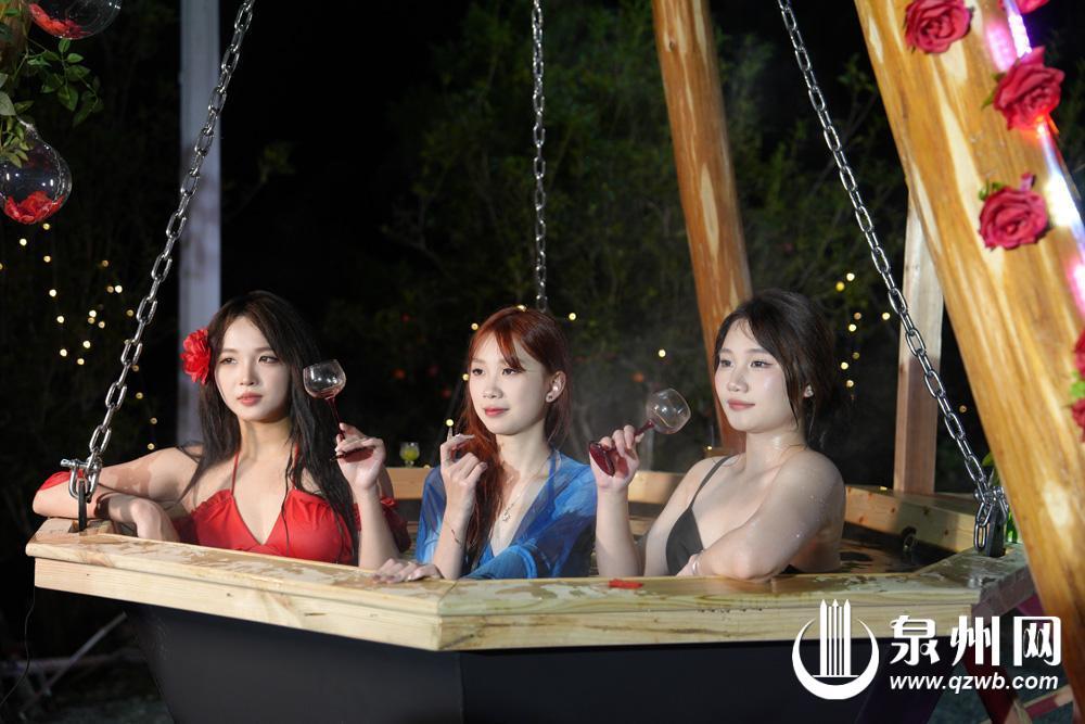 作为本次活动分会场之一的南埕镇,拥有知名的塔兜温泉,其温泉水温高达88℃—93℃,日涌量丰富。此次温泉季,南埕镇创新推出“铁锅温泉”特色体验,活动持续至2月底,现场特设大型铁锅造型温泉池,并精心布置“花泉月下”“情投浴合”“有泉有势”三大主题场景,分别搭配花瓣浴、草本药浴及滋养类汤料,适配养生解压、情侣约会、好友同行等不同需求。新颖的形式与特色汤料相结合,既充满视觉吸引力,也增强了互动体验与记忆点。来自泉州的林女士赞叹道:“第一次在‘铁锅’里泡温泉,场景别致出片,泡完后浑身舒畅,完全超出了预期。”现场还设有簪花木桶足浴项目,以传统木桶搭配雅致花艺与特色足浴包,让游客在舒缓解乏的同时,也能享受浪漫的拍照打卡乐趣。