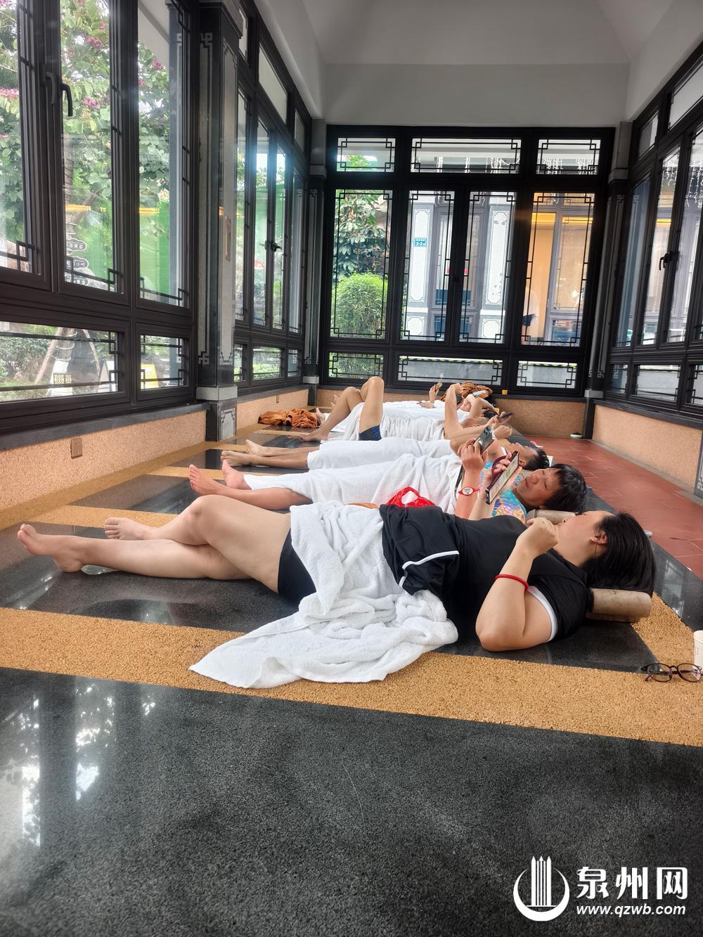 南安自古便是远近闻名的温泉胜地,境内藏有多处优质温泉。官桥镇盐田村的温泉便是其中之一,其温泉属天然硫黄温泉,自20世纪30年代被发现以来,便以其自带咸味而闻名——不仅泉水咸润,连当地种出来的甘蔗也带着咸味,成为该村落独有的印记。依托这份得天独厚的地下温泉资源,此间有一处盐田温泉顺势而建,将泡池划分为高温、中温、低温三个区域,方便游客根据自身体质与喜好随心选择。置身池中,蒸腾的热气裹挟着山野气息,让人在松弛间卸下一身疲惫。吸引了不少游客周末结伴前来。“在这里有种靠山泡汤的感觉。”市民曾女士表示,泡汤时看着窗外连绵的山峰,风景秀丽,适合周末远离城市,与大自然建立连接,格外松弛,“我还会在池中撒些花瓣,让这份惬意更具仪式感。”