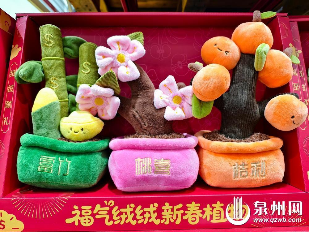 烘托春节气氛的装饰正显得越来越“潮”,充满趣味的“氛围感玩具”成市场新宠。记者走访市场发现,毛绒年宵花“异军突起”,成为新晋热门。金钱树、金橘造型的毛绒摆件软萌可爱,除了传统的大红、粉色,浅蓝、奶黄等清新色系也颇受青睐,锦鲤、醒狮、糖葫芦造型的毛绒花束更是自带新年味。年宵花积木同样抢手,水仙花、蜡梅造型的积木可自主组装,部分还内嵌灯串,摆放在家里更显热闹。就连花瓶也玩出了新意,寓意吉祥的橘子、杨桃等水果造型瓷瓶,成为插年宵花的“最佳搭档”。