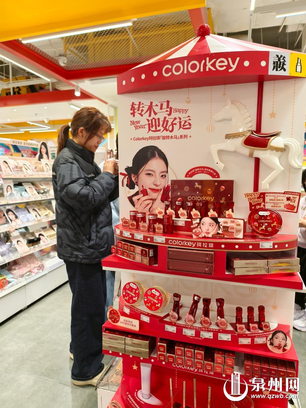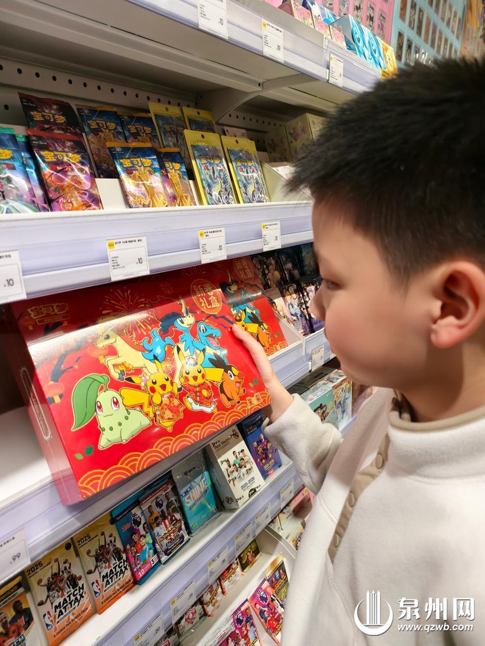 “万物皆可当年货”的热潮袭来。在丰泽区一家商场的潮玩店内,知名动漫IP宝可梦推出了潮玩盲盒,引来不少小朋友驻足。美妆品牌则推出了春节限定专柜,以红色为主的货架十分吸睛,适合春节涂的口红、眼影依次摆放。清洁用品也搭上年货礼盒的快车,不仅包装精致,还搭配了不同功效的清洁单品,实用又有仪式感。