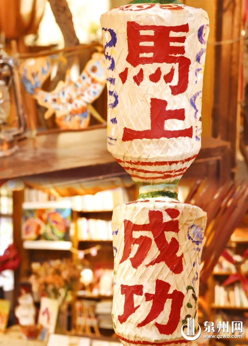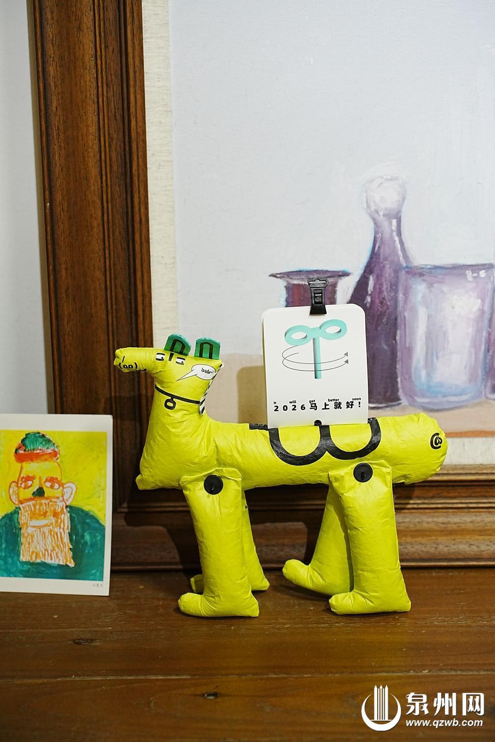 美术馆内还有油纸灯笼手作,其中一对充满泉州在地文化趣味的手工灯笼上简明地书写着红色大字,拼接起来就是寓意吉祥的“马上成功”,工作人员介绍:“这款油纸灯既呼应了马年生肖主题,又暗含泉州‘成功故里’的文化元素,手绘让它既有传统年味,又充满了活泼的艺术感。”