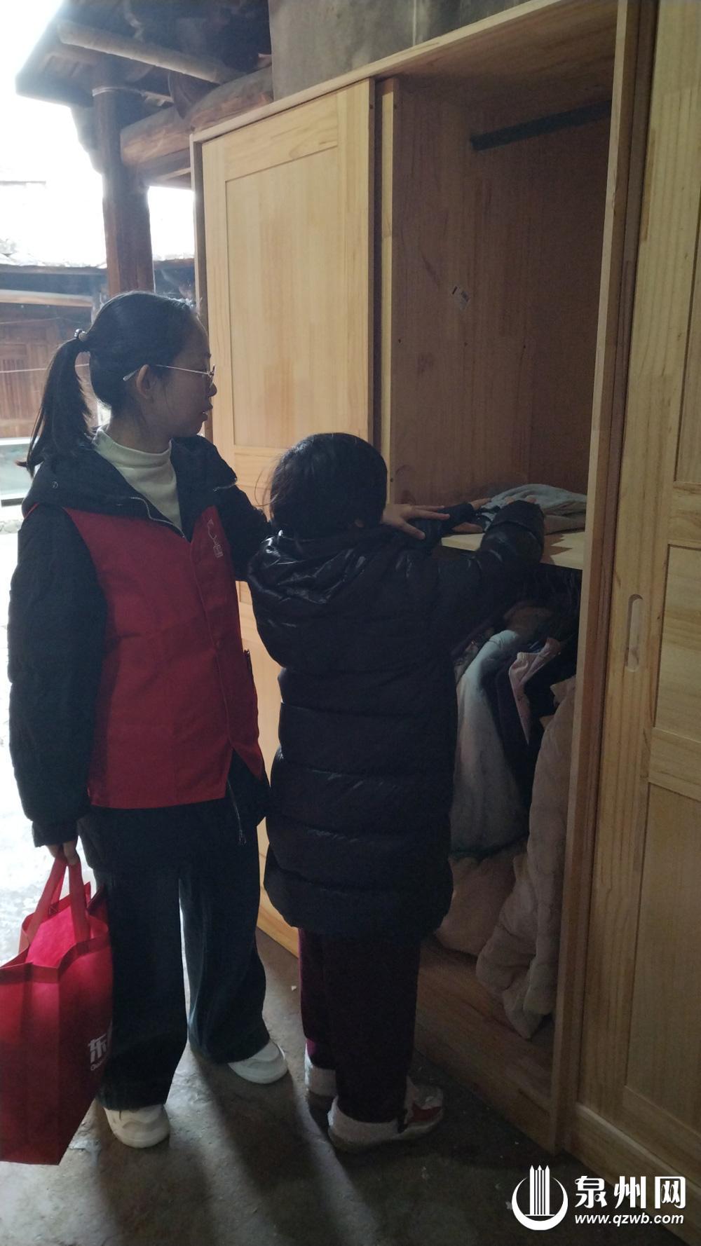 除了物资捐赠,志愿者还手把手教孩子们整理衣柜、叠被收纳等生活技能,将帮扶从“物资补给”延伸到“能力提升”,引导孩子养成良好生活习惯。如今的老屋,三张床铺配齐了床上用品,衣物有了专属收纳空间,渐渐有了“家”的模样与温度,小郑看着崭新的床铺和衣柜,脸上绽放出久违的笑容。